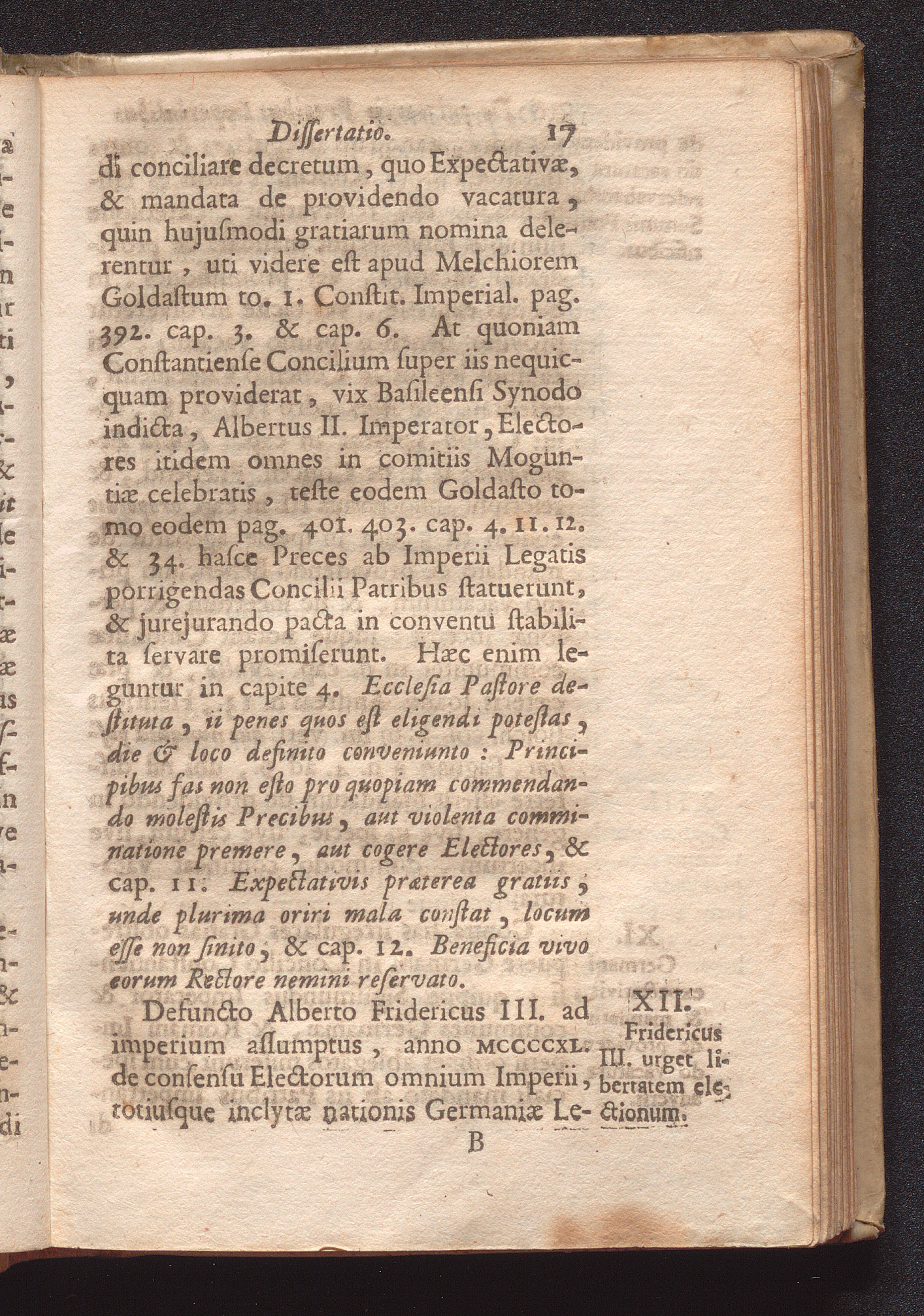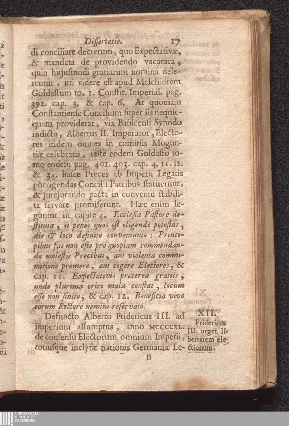 Conradi Oligenii J. C. Dissertatio De Primariis Precibus Imperialibus : Ubi argumentis ex Jure Canonico deductis, Concordatis inclytæ nationis Germanicæ, Pontificiis Diplomatibus, & perpetua consuetudineostenditur illas dirigi à Cæsarea Majestate non posse sine speciali indulto Summi Pontificis