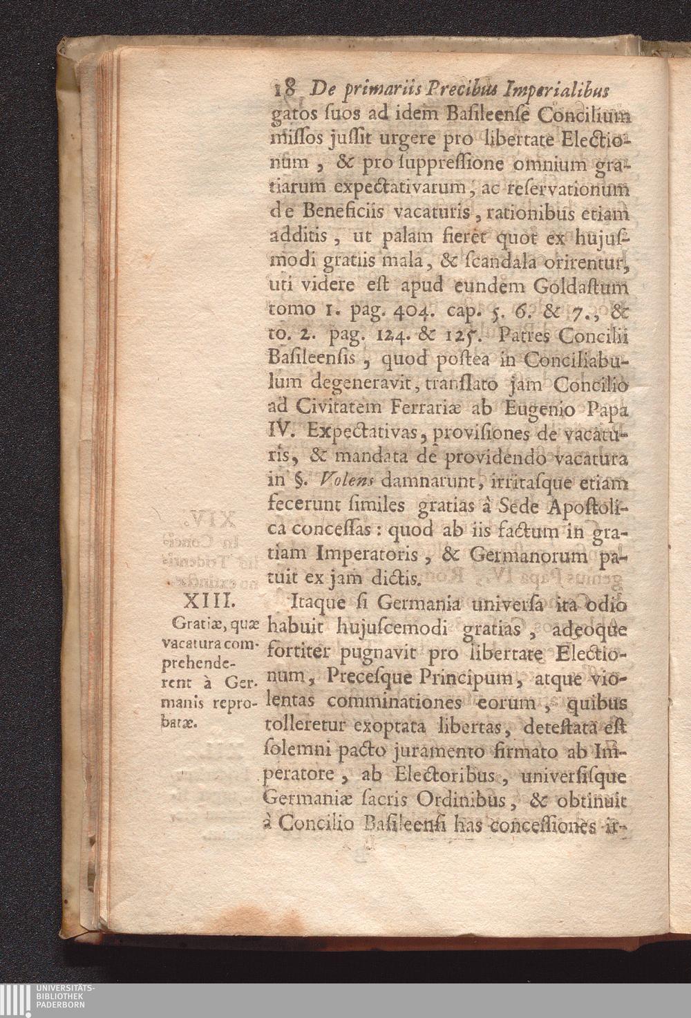 Conradi Oligenii J. C. Dissertatio De Primariis Precibus Imperialibus : Ubi argumentis ex Jure Canonico deductis, Concordatis inclytæ nationis Germanicæ, Pontificiis Diplomatibus, & perpetua consuetudineostenditur illas dirigi à Cæsarea Majestate non posse sine speciali indulto Summi Pontificis