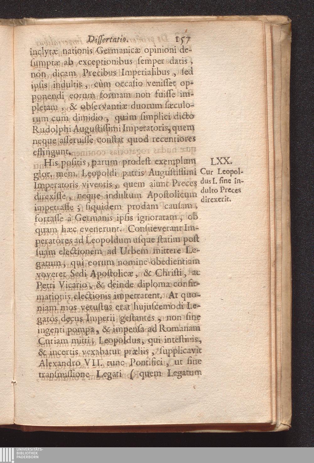 Conradi Oligenii J. C. Dissertatio De Primariis Precibus Imperialibus : Ubi argumentis ex Jure Canonico deductis, Concordatis inclytæ nationis Germanicæ, Pontificiis Diplomatibus, & perpetua consuetudineostenditur illas dirigi à Cæsarea Majestate non posse sine speciali indulto Summi Pontificis