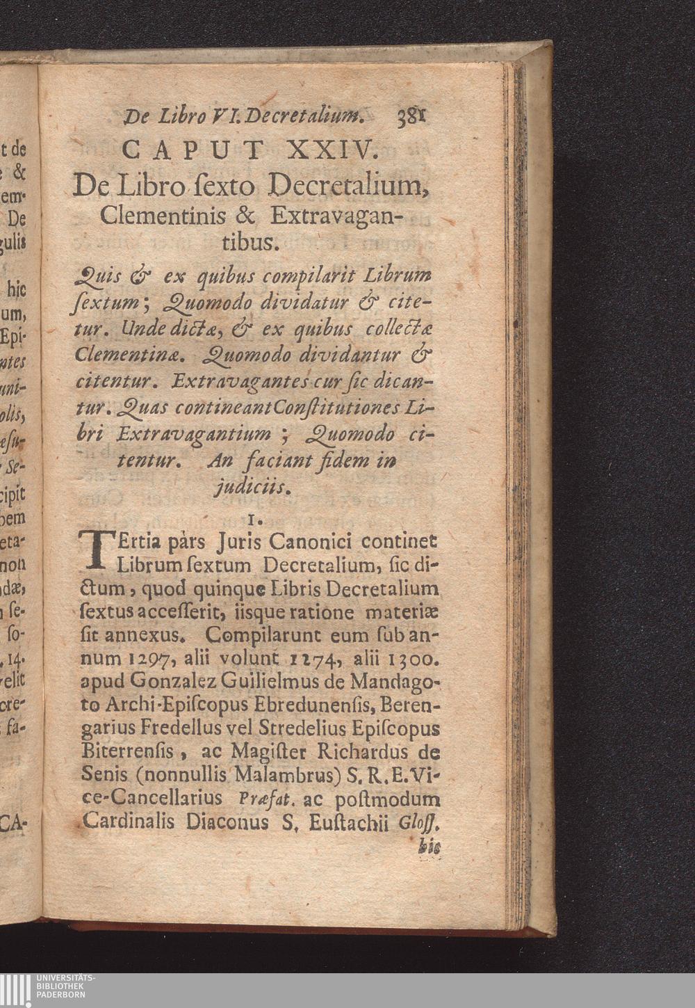 Caput XXIV. De Libro sexto Decretalium, Clementinis, & Extravagantibus.