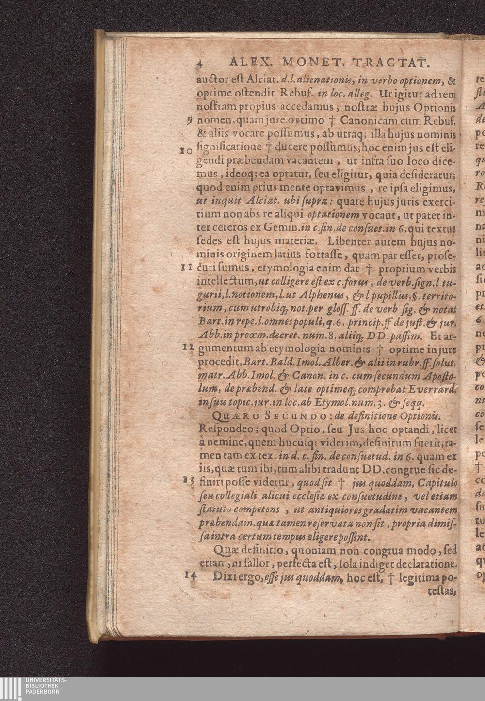 Duo Tractatus : Alter De Optione Canonica: In Qvo De Ivre Optandi, Qvod partim ex consuetudine, partim ex statuto in omnibus jam ferè Ecclesius, tam Cathedralibus, quàm Collegiatus, & nonnullis quoq[ue] aliis Collegius viget, fusè nunc primùm & ordinatim agitur. Alter De Decimis: Tam Spiritvalibvs, Qvæ Ecclesiis ...; Duplici Indice, tum Quæstionum, tum rerum singularium locupletissimo ad quemque Tractatum adiecto / Autore Alexandro Moneta, S. Theologiæ & J.U.D. ac Mediolanensis Ecclesiæ Canonico ordinario