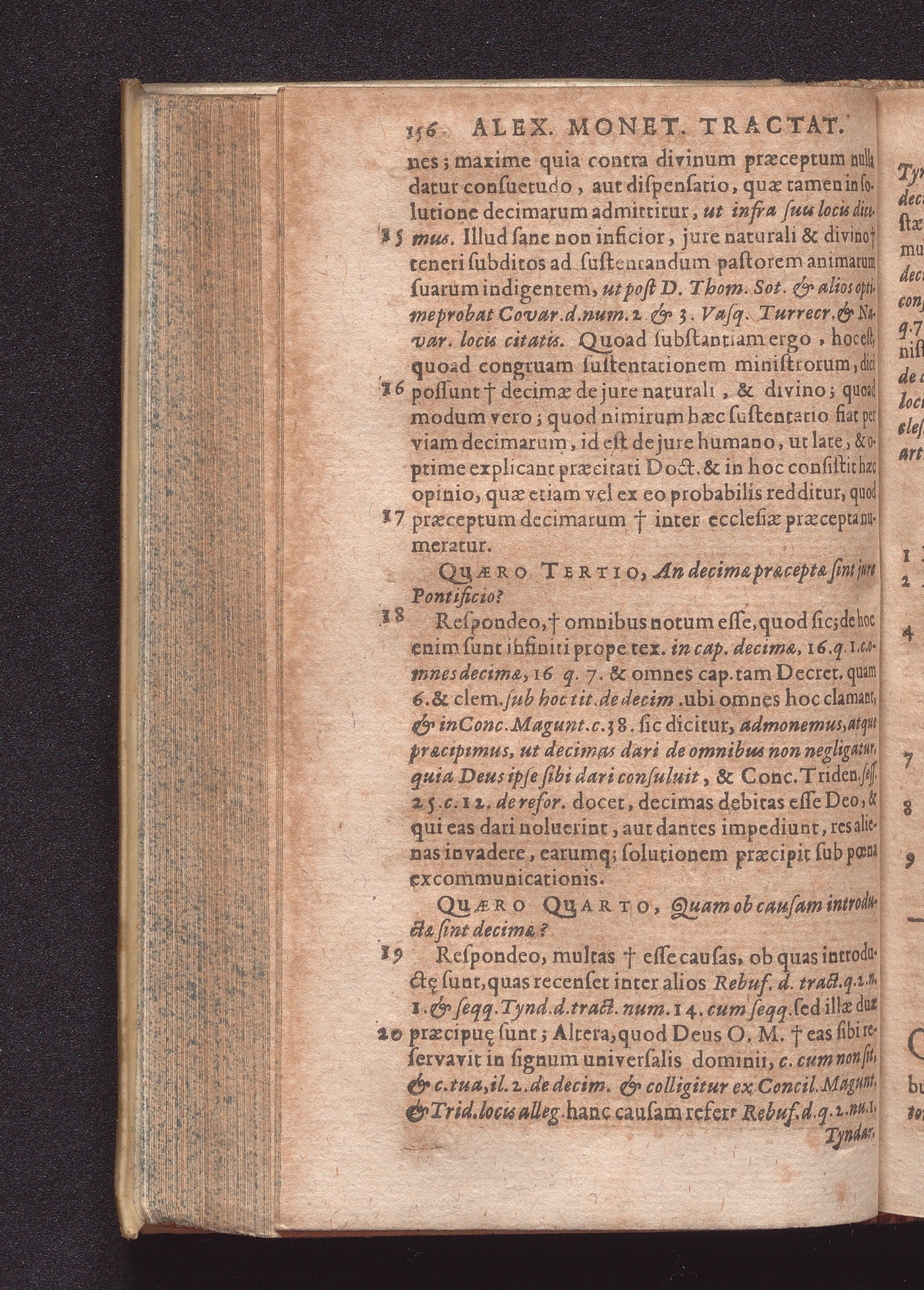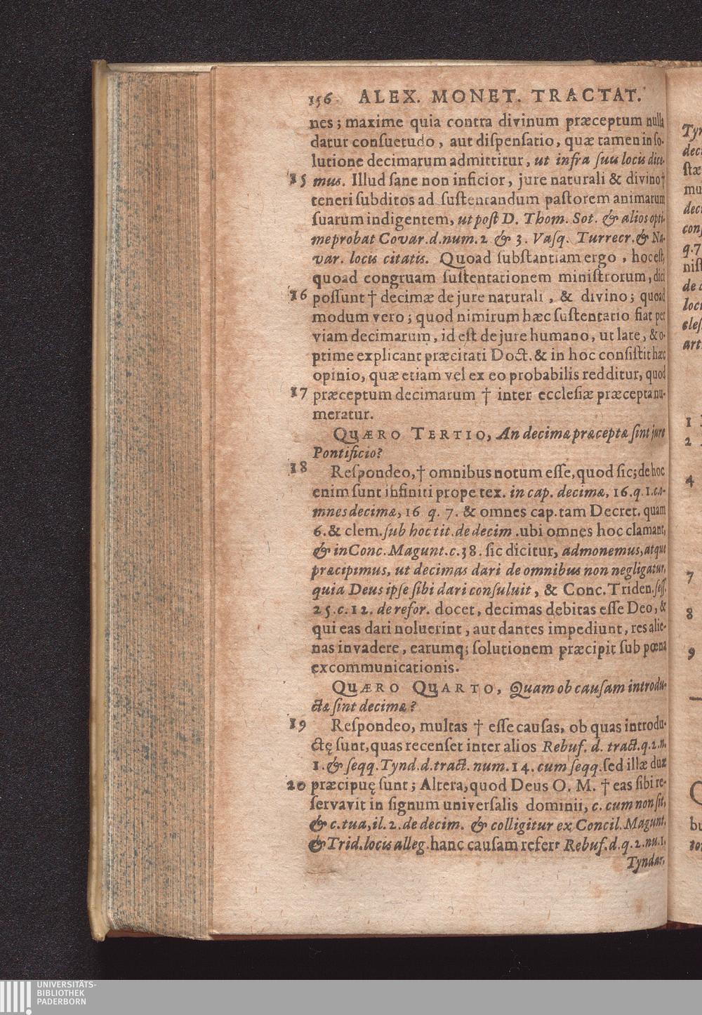 Duo Tractatus : Alter De Optione Canonica: In Qvo De Ivre Optandi, Qvod partim ex consuetudine, partim ex statuto in omnibus jam ferè Ecclesius, tam Cathedralibus, quàm Collegiatus, & nonnullis quoq[ue] aliis Collegius viget, fusè nunc primùm & ordinatim agitur. Alter De Decimis: Tam Spiritvalibvs, Qvæ Ecclesiis ...; Duplici Indice, tum Quæstionum, tum rerum singularium locupletissimo ad quemque Tractatum adiecto / Autore Alexandro Moneta, S. Theologiæ & J.U.D. ac Mediolanensis Ecclesiæ Canonico ordinario