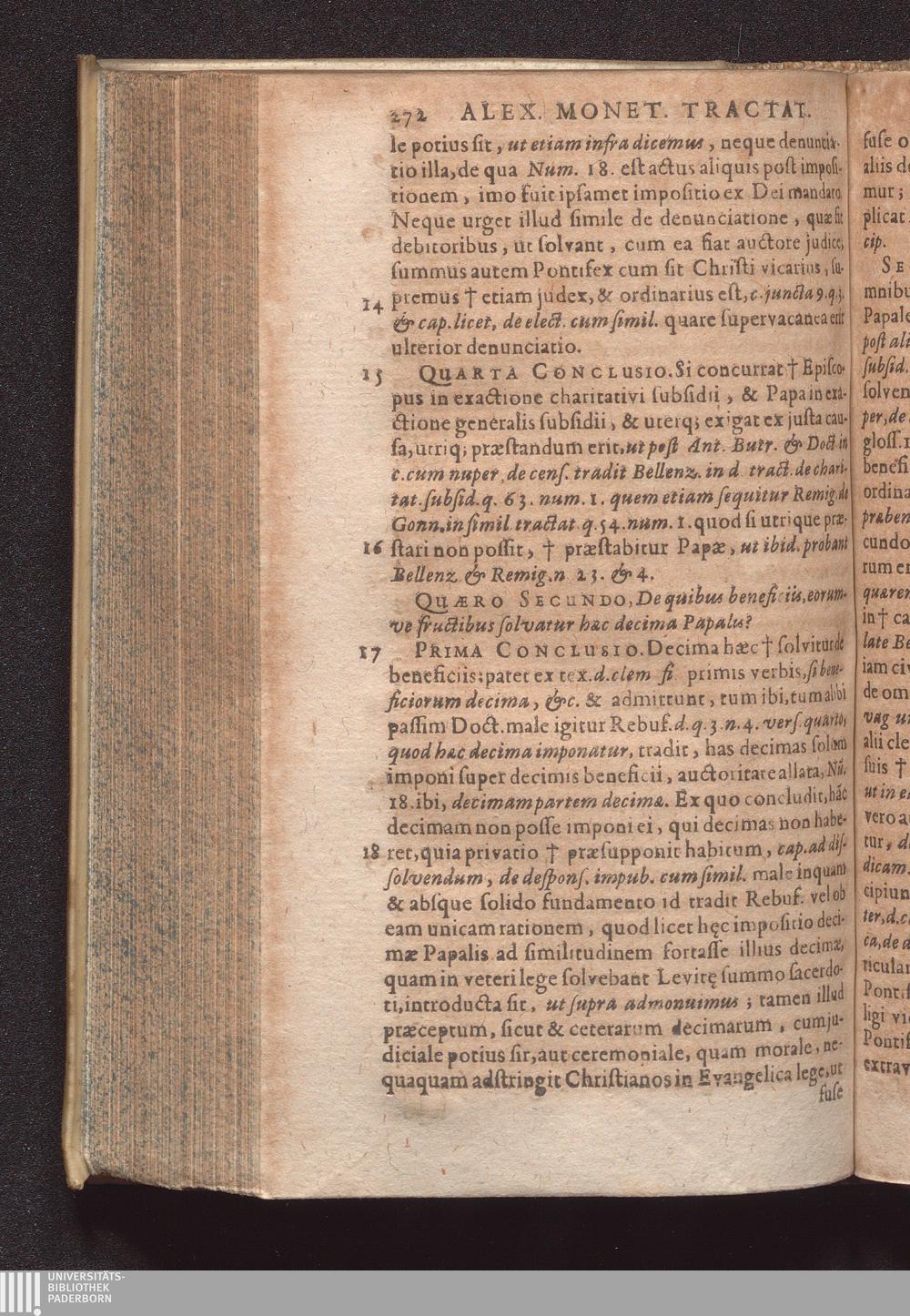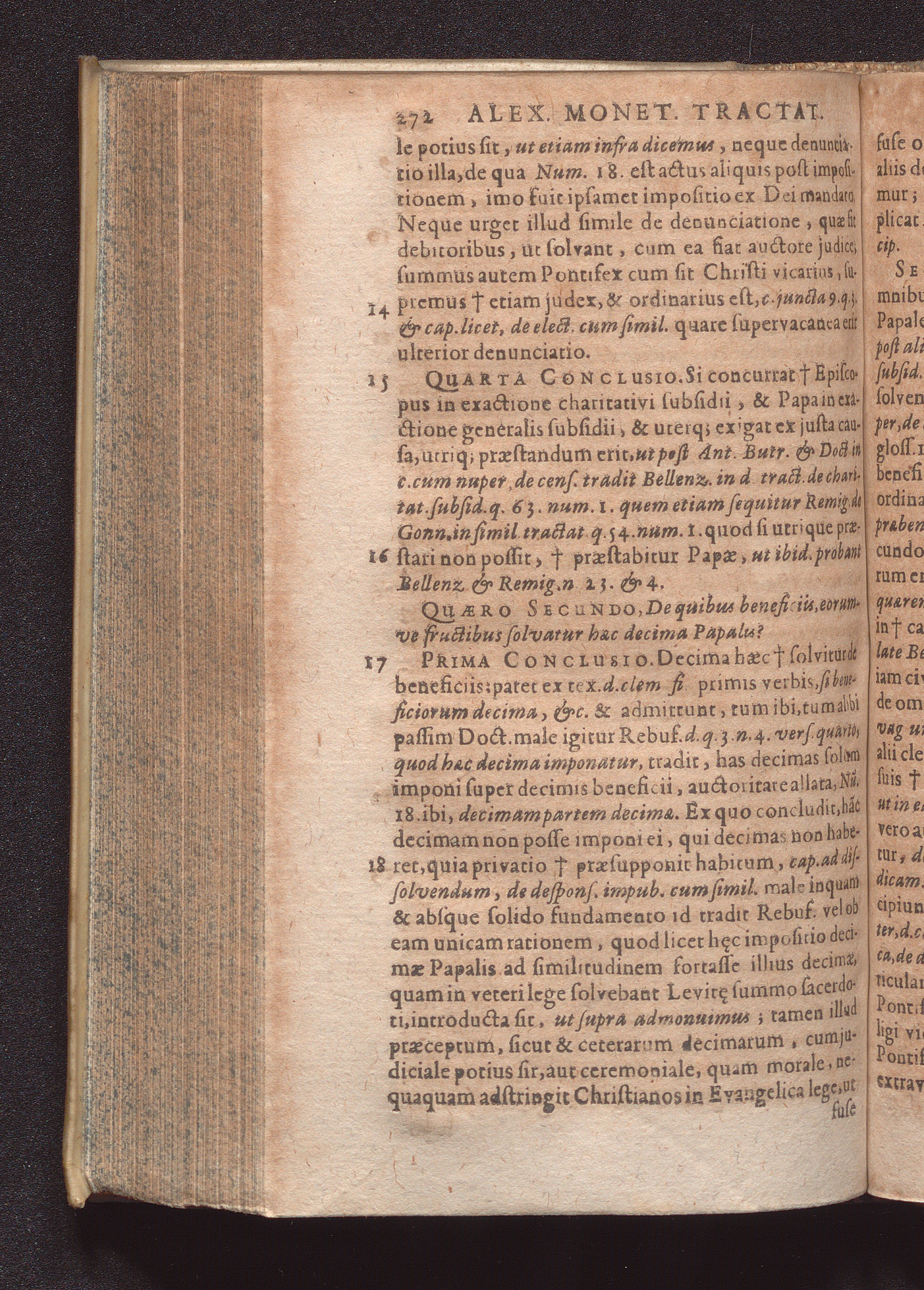 Duo Tractatus : Alter De Optione Canonica: In Qvo De Ivre Optandi, Qvod partim ex consuetudine, partim ex statuto in omnibus jam ferè Ecclesius, tam Cathedralibus, quàm Collegiatus, & nonnullis quoq[ue] aliis Collegius viget, fusè nunc primùm & ordinatim agitur. Alter De Decimis: Tam Spiritvalibvs, Qvæ Ecclesiis ...; Duplici Indice, tum Quæstionum, tum rerum singularium locupletissimo ad quemque Tractatum adiecto / Autore Alexandro Moneta, S. Theologiæ & J.U.D. ac Mediolanensis Ecclesiæ Canonico ordinario