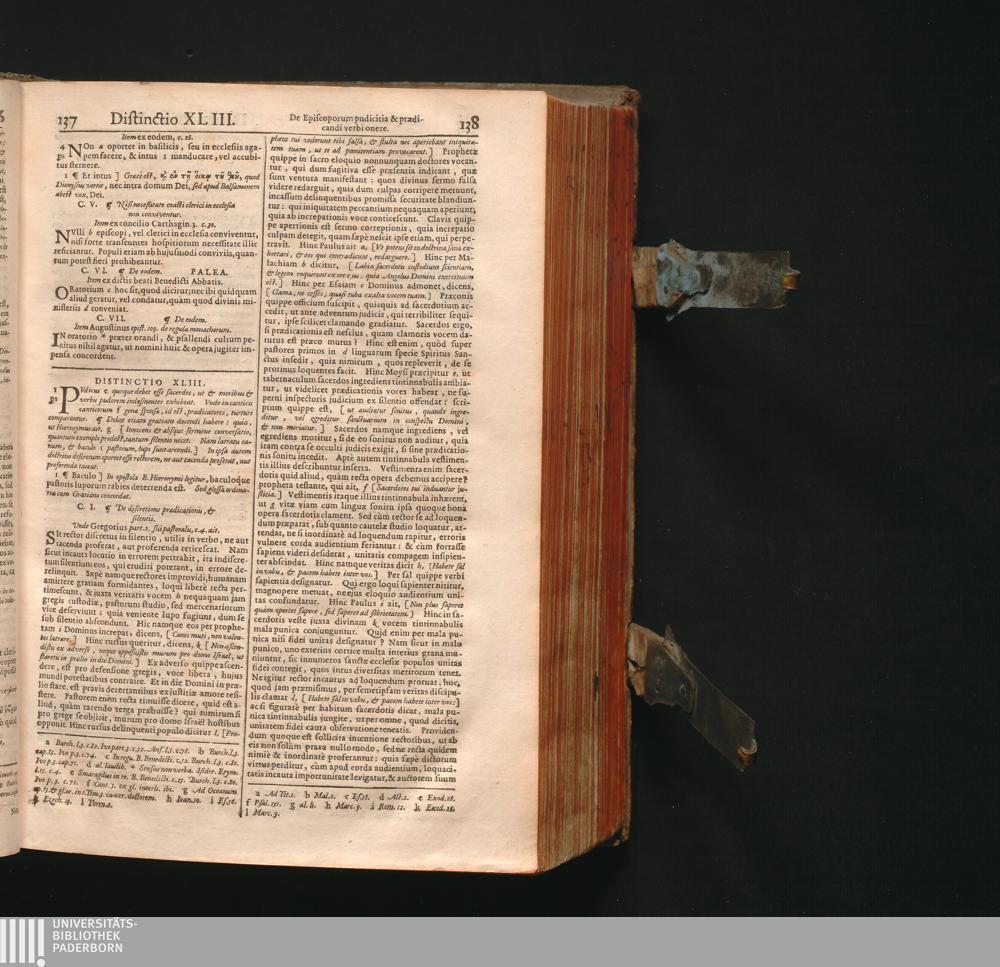 Corpus Juris Canonici : Emendatum Et Notis Illustratum. Indicibus Variis, Novisq[ue] Et Appendice Pauli Lancelotti Perusini Adauctum: Cujus Partes Indicat Aversa Pagina. Accesserunt Novissimè Loci Communes uberrimi, summâ diligentiâ ex ipsis Canonibus collecti, & ordine ac methodo singulari ad usum Fori utriusque fideliter Digesti: Theologis, Politicis, & Practicis pernedessarij. Itemq[ue] Liber VII. Decretalium hac primùm editione Novis aliquot Constitutionibus auctus / Gregorii XIII. Pont. Max. Jussu Editum