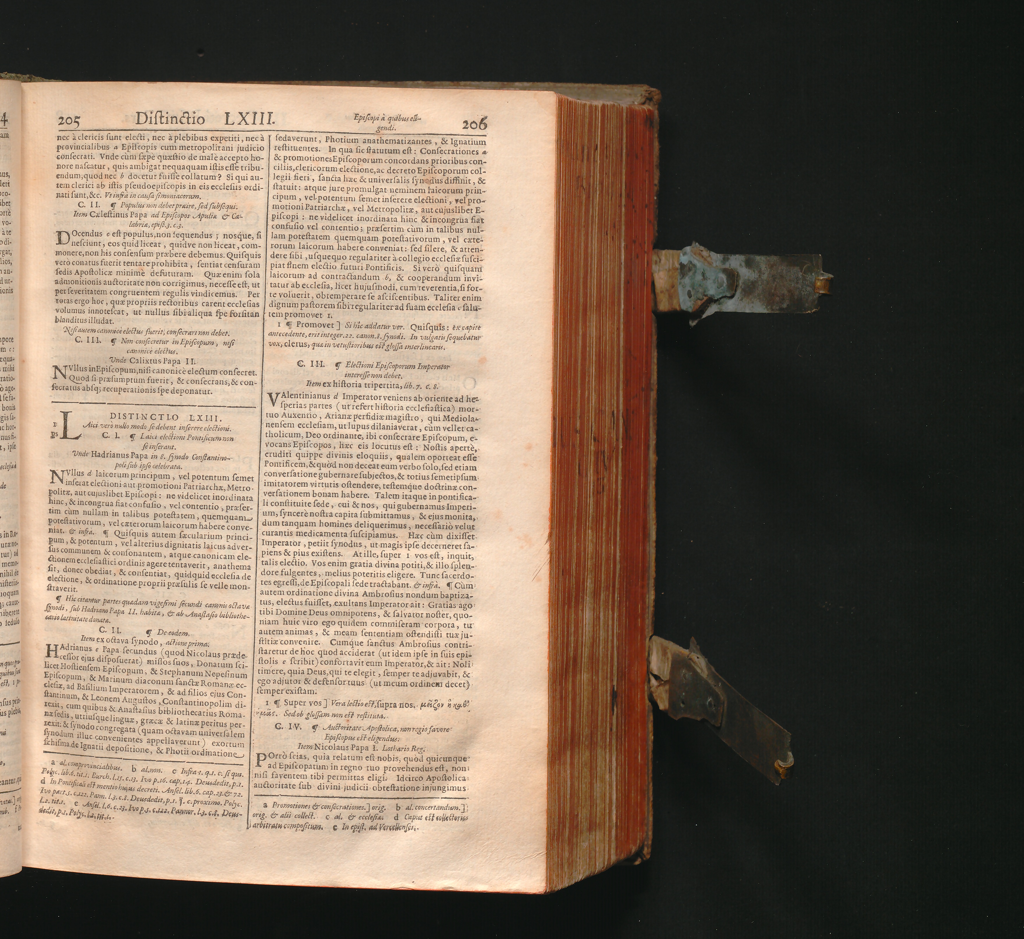 Corpus Juris Canonici : Emendatum Et Notis Illustratum. Indicibus Variis, Novisq[ue] Et Appendice Pauli Lancelotti Perusini Adauctum: Cujus Partes Indicat Aversa Pagina. Accesserunt Novissimè Loci Communes uberrimi, summâ diligentiâ ex ipsis Canonibus collecti, & ordine ac methodo singulari ad usum Fori utriusque fideliter Digesti: Theologis, Politicis, & Practicis pernedessarij. Itemq[ue] Liber VII. Decretalium hac primùm editione Novis aliquot Constitutionibus auctus / Gregorii XIII. Pont. Max. Jussu Editum