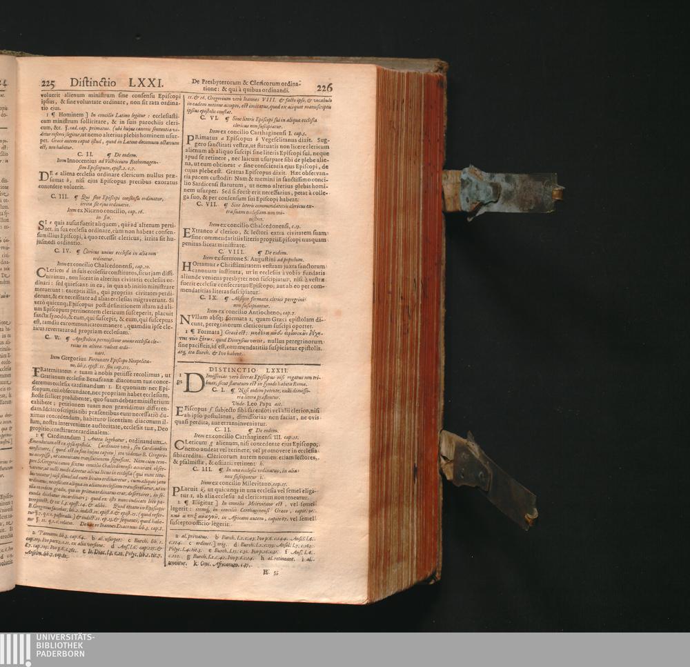 Corpus Juris Canonici : Emendatum Et Notis Illustratum. Indicibus Variis, Novisq[ue] Et Appendice Pauli Lancelotti Perusini Adauctum: Cujus Partes Indicat Aversa Pagina. Accesserunt Novissimè Loci Communes uberrimi, summâ diligentiâ ex ipsis Canonibus collecti, & ordine ac methodo singulari ad usum Fori utriusque fideliter Digesti: Theologis, Politicis, & Practicis pernedessarij. Itemq[ue] Liber VII. Decretalium hac primùm editione Novis aliquot Constitutionibus auctus / Gregorii XIII. Pont. Max. Jussu Editum