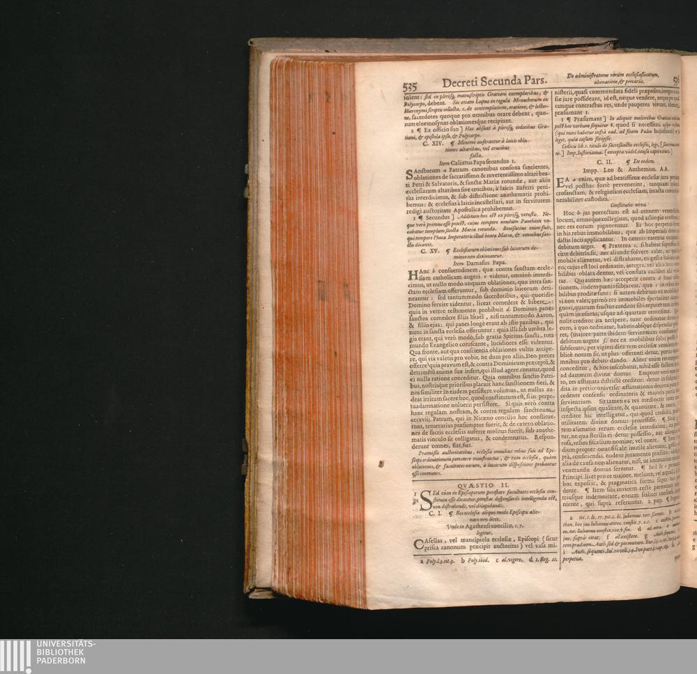 Corpus Juris Canonici : Emendatum Et Notis Illustratum. Indicibus Variis, Novisq[ue] Et Appendice Pauli Lancelotti Perusini Adauctum: Cujus Partes Indicat Aversa Pagina. Accesserunt Novissimè Loci Communes uberrimi, summâ diligentiâ ex ipsis Canonibus collecti, & ordine ac methodo singulari ad usum Fori utriusque fideliter Digesti: Theologis, Politicis, & Practicis pernedessarij. Itemq[ue] Liber VII. Decretalium hac primùm editione Novis aliquot Constitutionibus auctus / Gregorii XIII. Pont. Max. Jussu Editum
