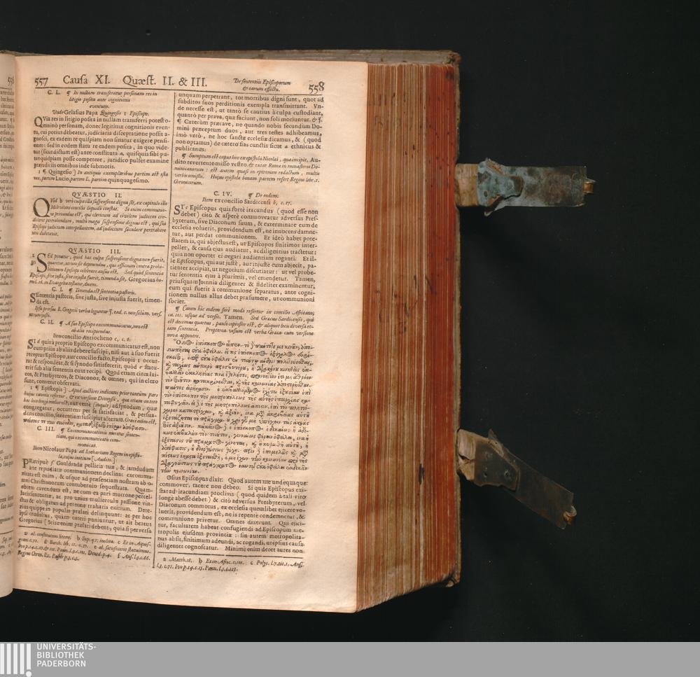 Corpus Juris Canonici : Emendatum Et Notis Illustratum. Indicibus Variis, Novisq[ue] Et Appendice Pauli Lancelotti Perusini Adauctum: Cujus Partes Indicat Aversa Pagina. Accesserunt Novissimè Loci Communes uberrimi, summâ diligentiâ ex ipsis Canonibus collecti, & ordine ac methodo singulari ad usum Fori utriusque fideliter Digesti: Theologis, Politicis, & Practicis pernedessarij. Itemq[ue] Liber VII. Decretalium hac primùm editione Novis aliquot Constitutionibus auctus / Gregorii XIII. Pont. Max. Jussu Editum