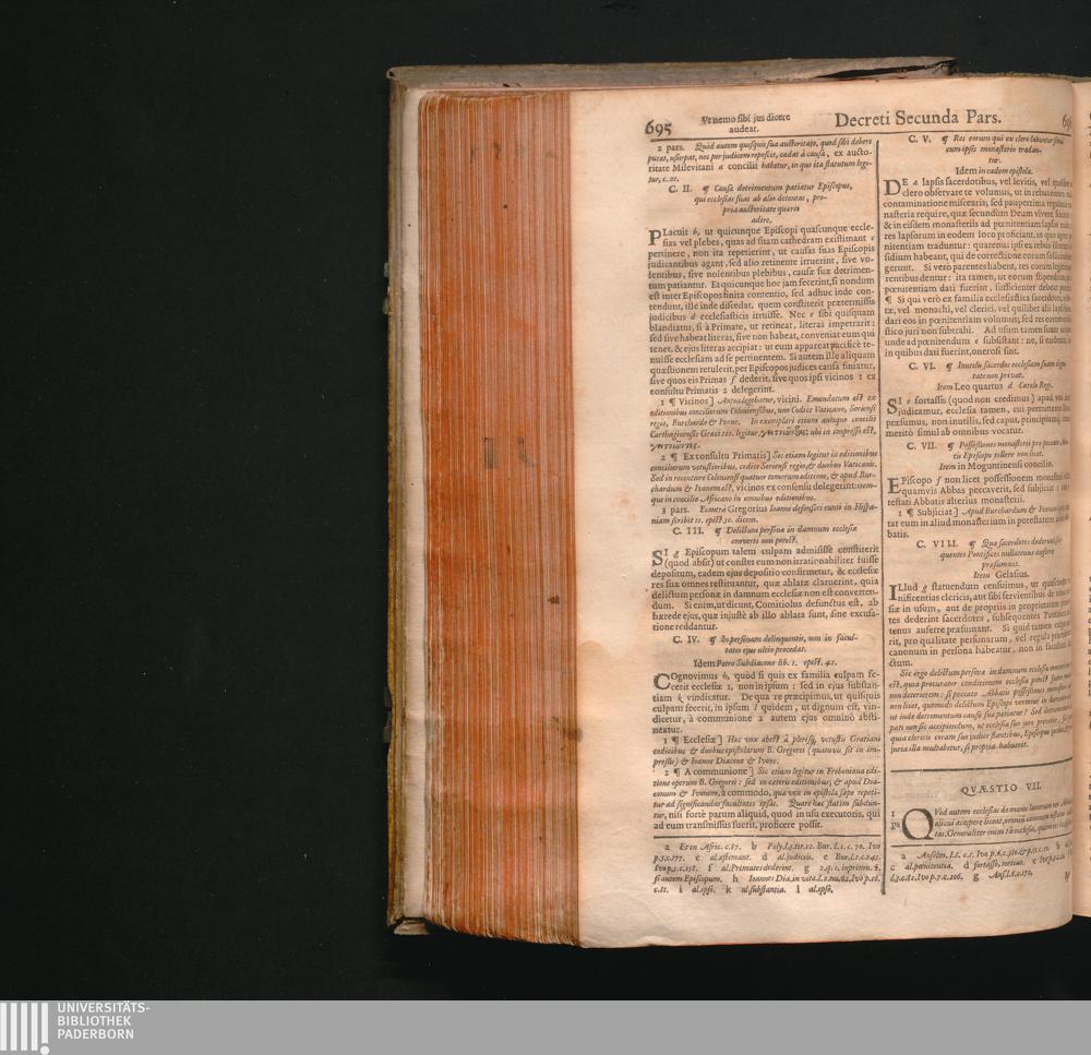 Corpus Juris Canonici : Emendatum Et Notis Illustratum. Indicibus Variis, Novisq[ue] Et Appendice Pauli Lancelotti Perusini Adauctum: Cujus Partes Indicat Aversa Pagina. Accesserunt Novissimè Loci Communes uberrimi, summâ diligentiâ ex ipsis Canonibus collecti, & ordine ac methodo singulari ad usum Fori utriusque fideliter Digesti: Theologis, Politicis, & Practicis pernedessarij. Itemq[ue] Liber VII. Decretalium hac primùm editione Novis aliquot Constitutionibus auctus / Gregorii XIII. Pont. Max. Jussu Editum