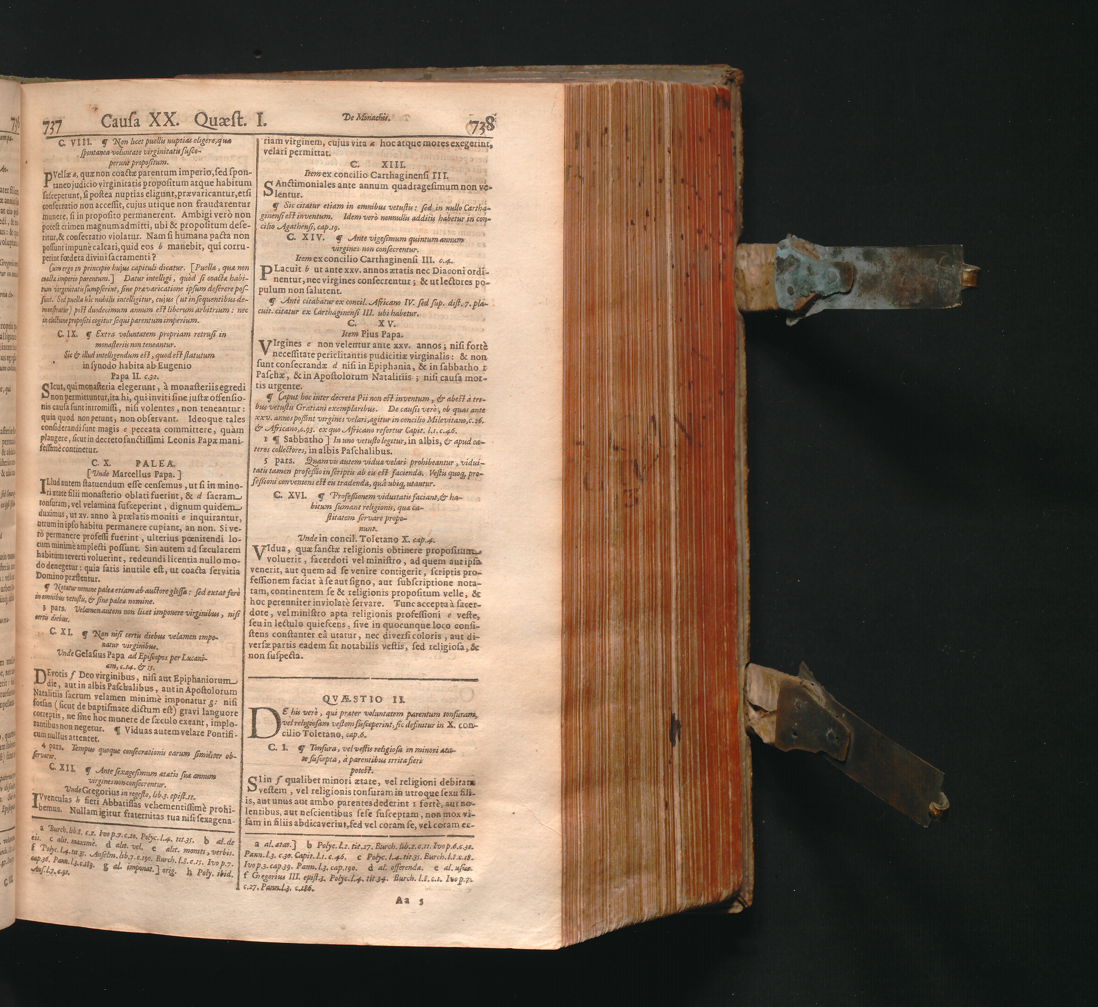 Corpus Juris Canonici : Emendatum Et Notis Illustratum. Indicibus Variis, Novisq[ue] Et Appendice Pauli Lancelotti Perusini Adauctum: Cujus Partes Indicat Aversa Pagina. Accesserunt Novissimè Loci Communes uberrimi, summâ diligentiâ ex ipsis Canonibus collecti, & ordine ac methodo singulari ad usum Fori utriusque fideliter Digesti: Theologis, Politicis, & Practicis pernedessarij. Itemq[ue] Liber VII. Decretalium hac primùm editione Novis aliquot Constitutionibus auctus / Gregorii XIII. Pont. Max. Jussu Editum