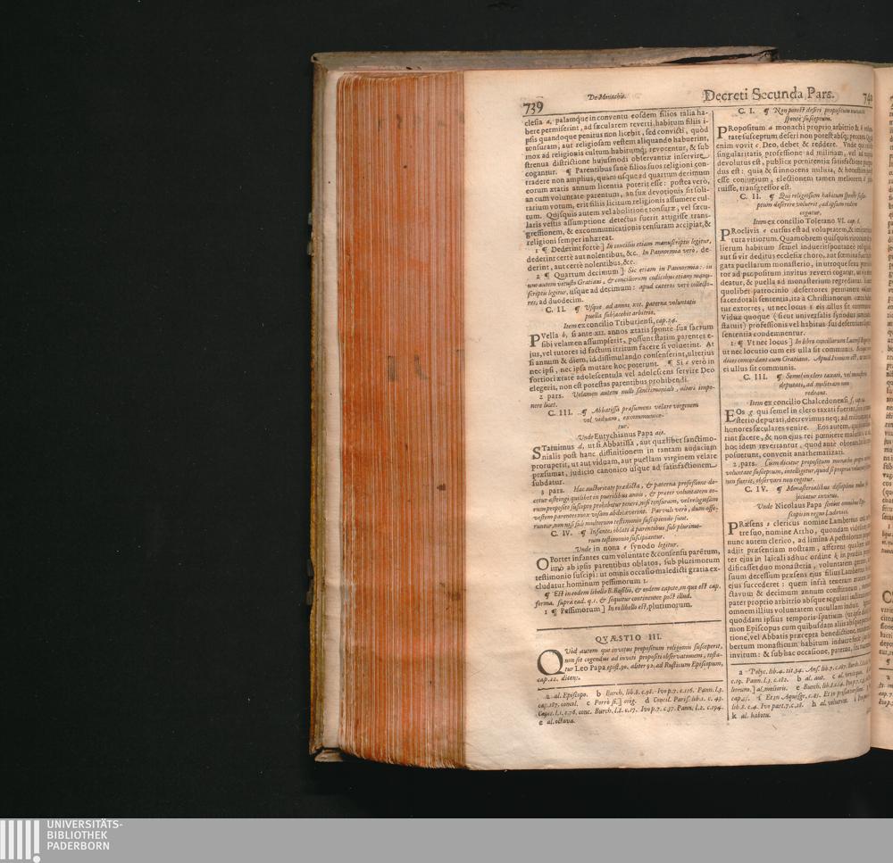 Corpus Juris Canonici : Emendatum Et Notis Illustratum. Indicibus Variis, Novisq[ue] Et Appendice Pauli Lancelotti Perusini Adauctum: Cujus Partes Indicat Aversa Pagina. Accesserunt Novissimè Loci Communes uberrimi, summâ diligentiâ ex ipsis Canonibus collecti, & ordine ac methodo singulari ad usum Fori utriusque fideliter Digesti: Theologis, Politicis, & Practicis pernedessarij. Itemq[ue] Liber VII. Decretalium hac primùm editione Novis aliquot Constitutionibus auctus / Gregorii XIII. Pont. Max. Jussu Editum