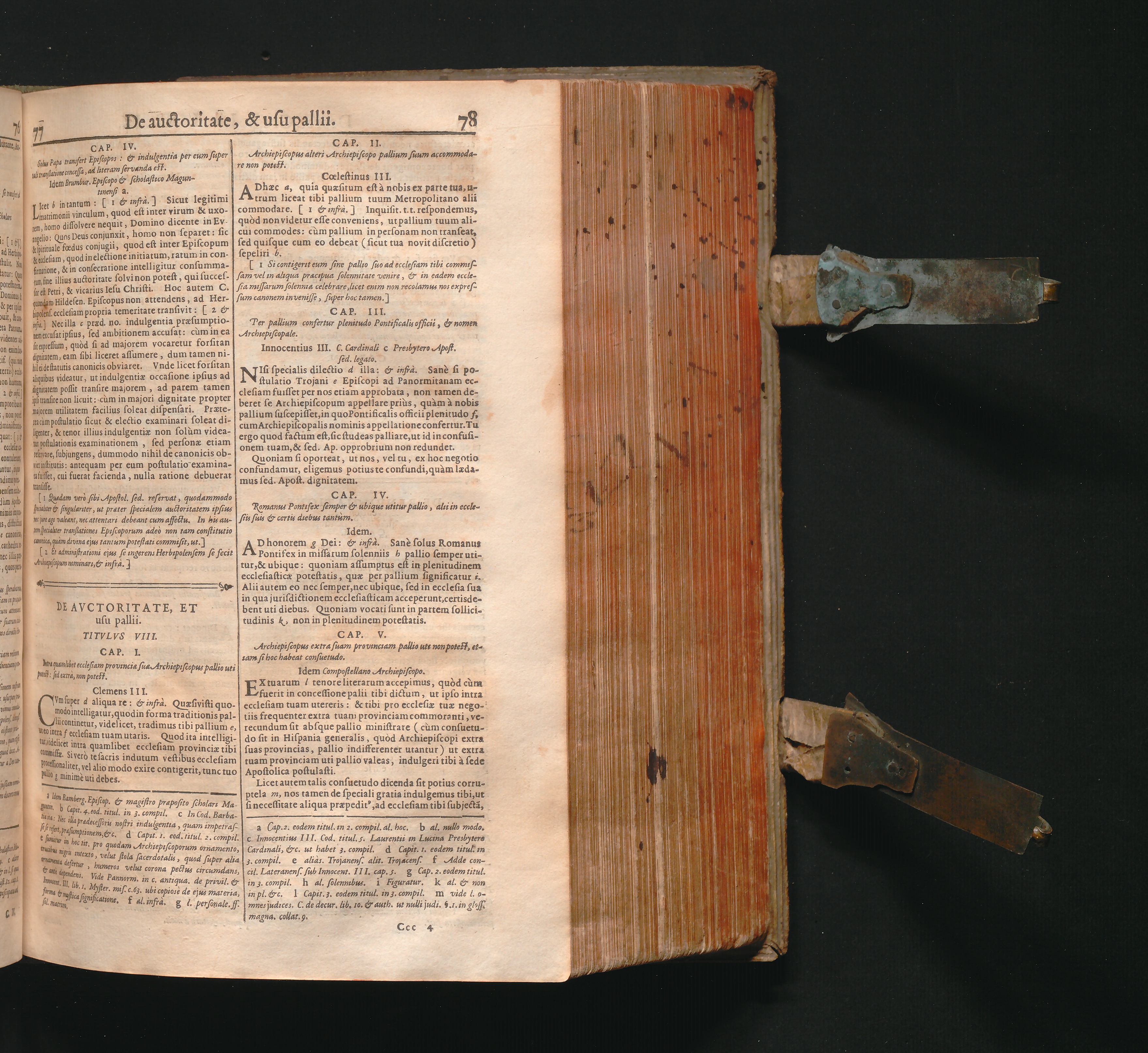Corpus Juris Canonici : Emendatum Et Notis Illustratum. Indicibus Variis, Novisq[ue] Et Appendice Pauli Lancelotti Perusini Adauctum: Cujus Partes Indicat Aversa Pagina. Accesserunt Novissimè Loci Communes uberrimi, summâ diligentiâ ex ipsis Canonibus collecti, & ordine ac methodo singulari ad usum Fori utriusque fideliter Digesti: Theologis, Politicis, & Practicis pernedessarij. Itemq[ue] Liber VII. Decretalium hac primùm editione Novis aliquot Constitutionibus auctus / Gregorii XIII. Pont. Max. Jussu Editum