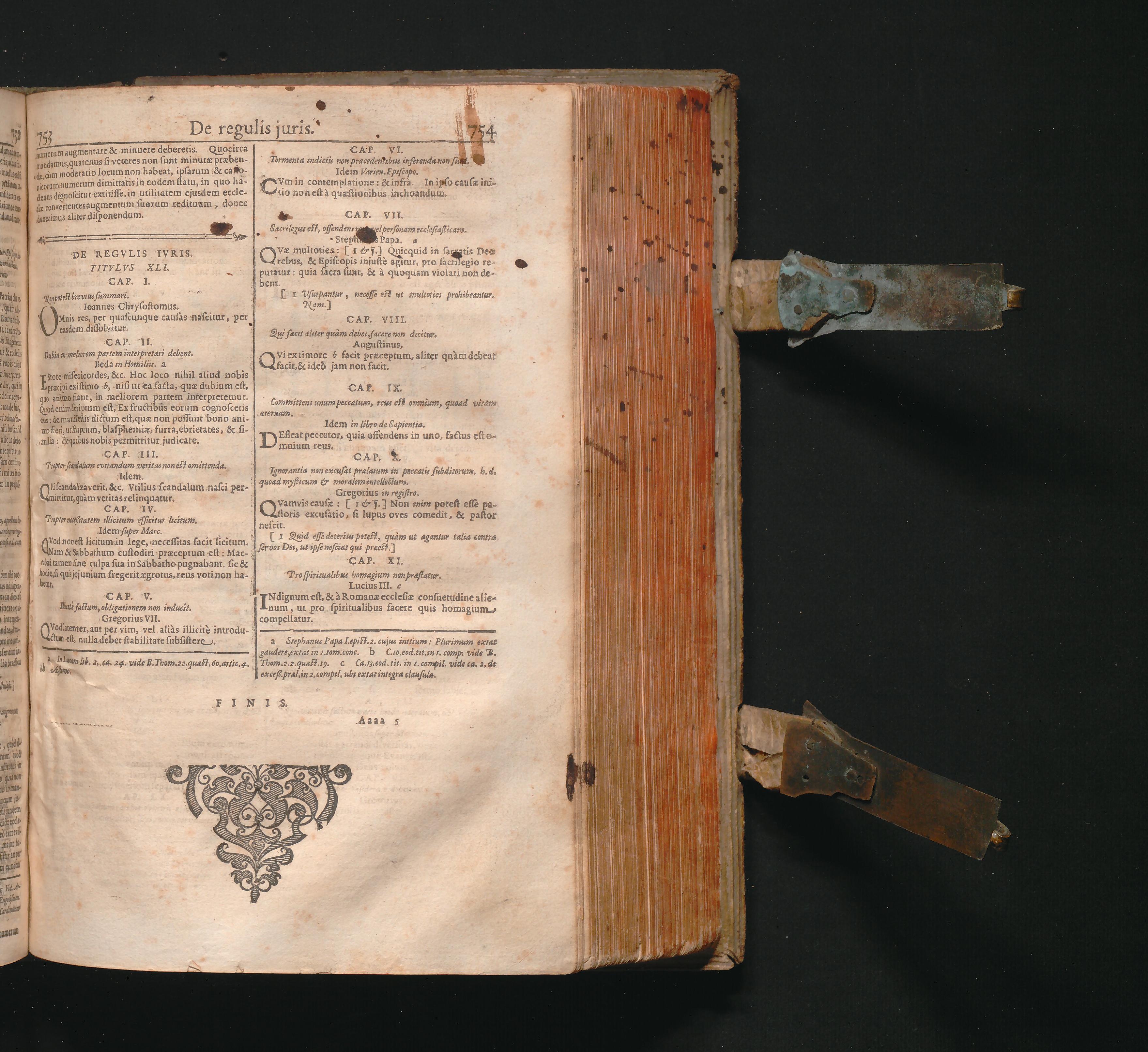 Corpus Juris Canonici : Emendatum Et Notis Illustratum. Indicibus Variis, Novisq[ue] Et Appendice Pauli Lancelotti Perusini Adauctum: Cujus Partes Indicat Aversa Pagina. Accesserunt Novissimè Loci Communes uberrimi, summâ diligentiâ ex ipsis Canonibus collecti, & ordine ac methodo singulari ad usum Fori utriusque fideliter Digesti: Theologis, Politicis, & Practicis pernedessarij. Itemq[ue] Liber VII. Decretalium hac primùm editione Novis aliquot Constitutionibus auctus / Gregorii XIII. Pont. Max. Jussu Editum