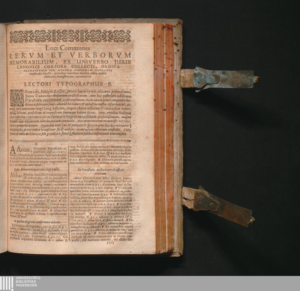 Corpus Juris Canonici : Emendatum Et Notis Illustratum. Indicibus Variis, Novisq[ue] Et Appendice Pauli Lancelotti Perusini Adauctum: Cujus Partes Indicat Aversa Pagina. Accesserunt Novissimè Loci Communes uberrimi, summâ diligentiâ ex ipsis Canonibus collecti, & ordine ac methodo singulari ad usum Fori utriusque fideliter Digesti: Theologis, Politicis, & Practicis pernedessarij. Itemq[ue] Liber VII. Decretalium hac primùm editione Novis aliquot Constitutionibus auctus / Gregorii XIII. Pont. Max. Jussu Editum