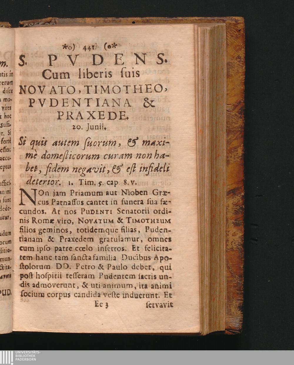S. Pvdens. Cum liberis suis Novato, Timotheo, Pvdentiana & Praxede. 20. Junii.
