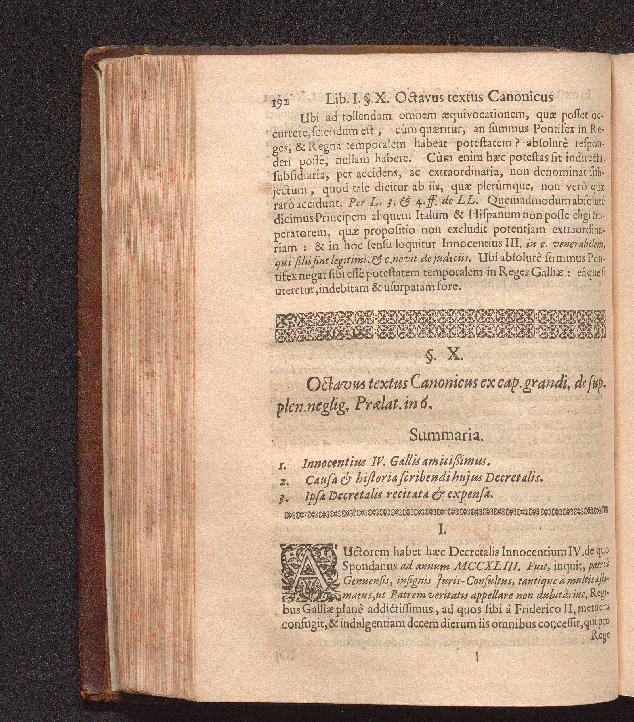 §. X. Octavus Text. Canon. excap. grandi. de supplen. neglig. Præl. in 6.