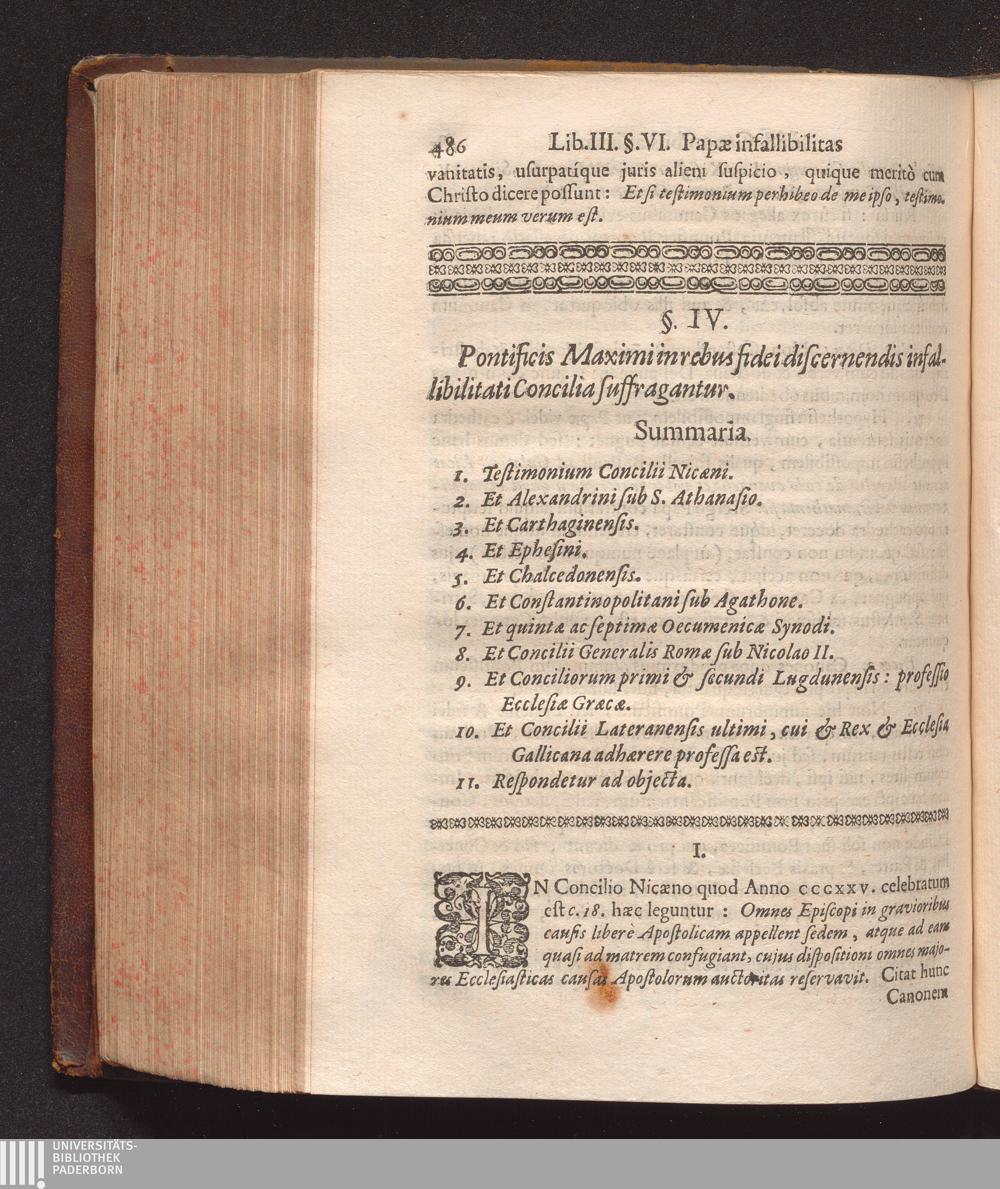 §. IV. Pontificis Maximi in rebus fidei discernendis infallibilitati Concilia su[...]