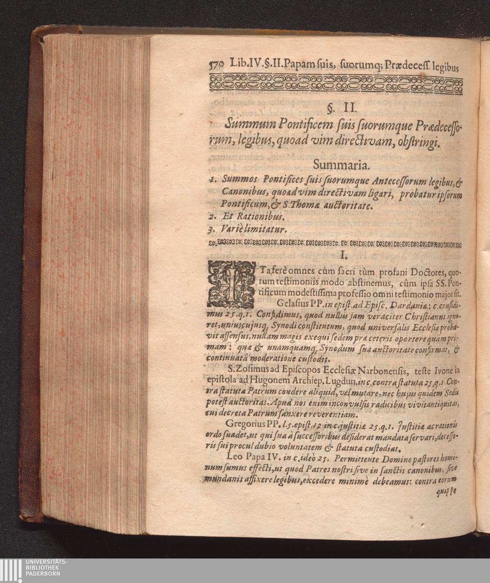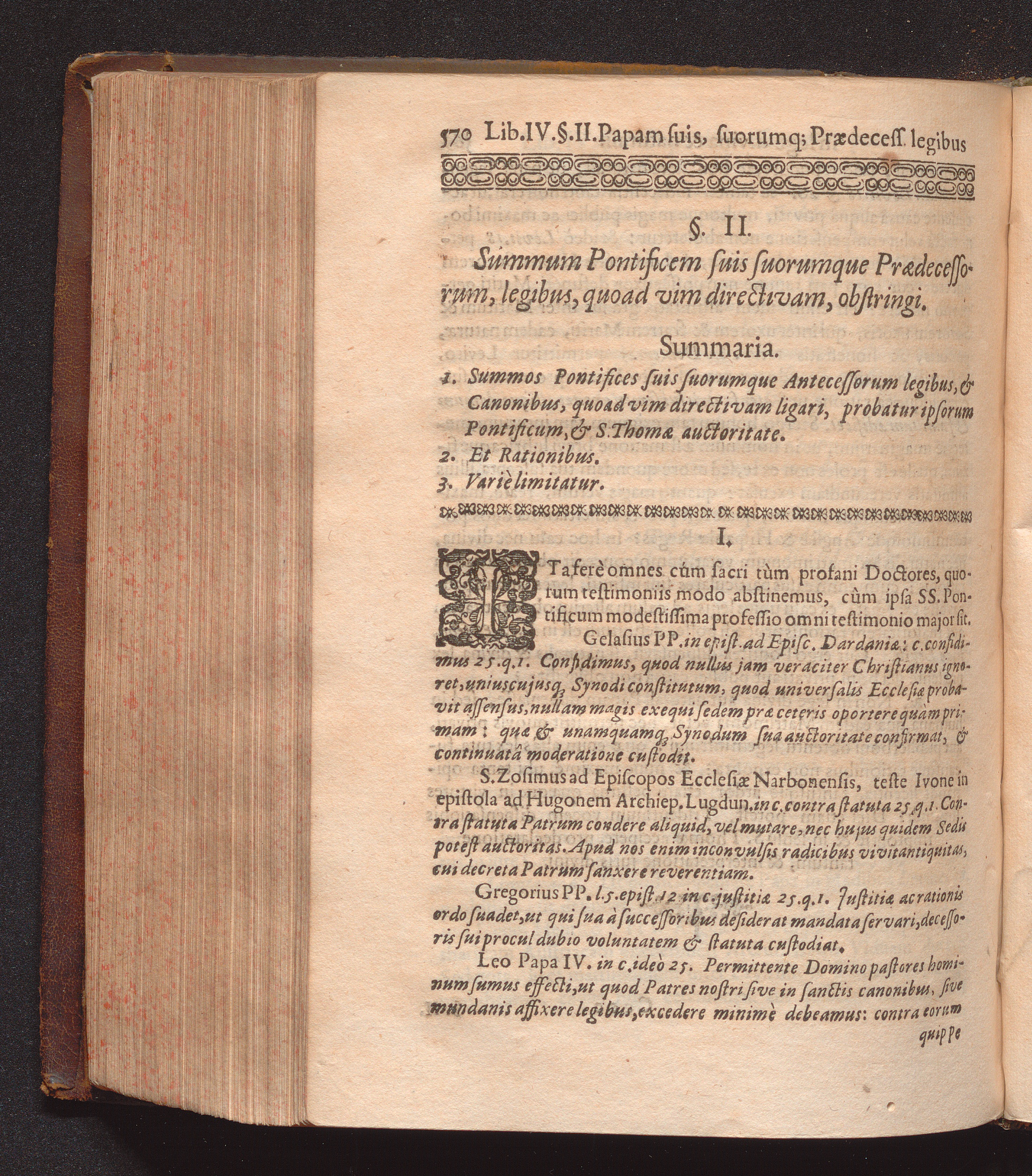 §. II. Summum Pontificem suis suorúmque prædecessorum legibus, quoad im directivam,[...]