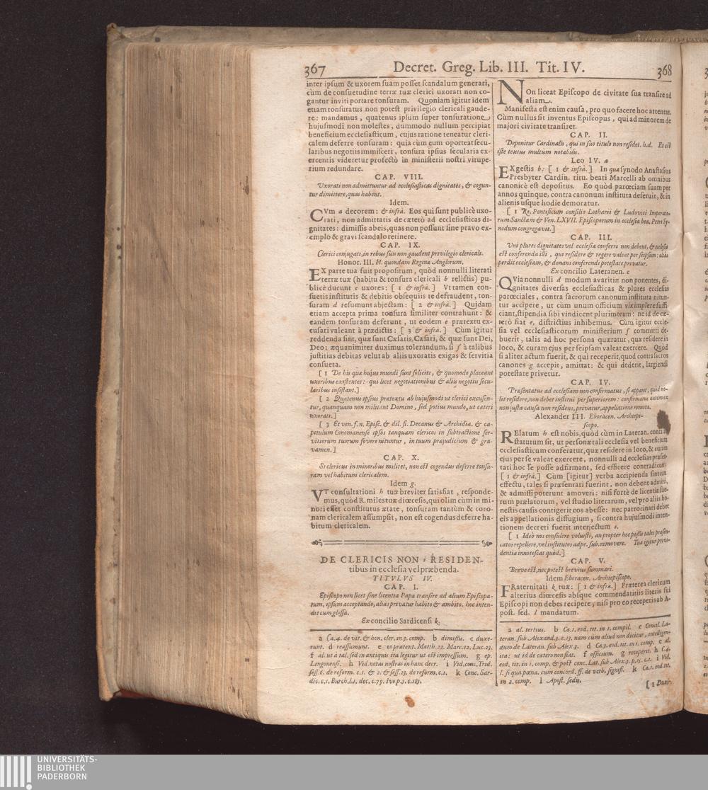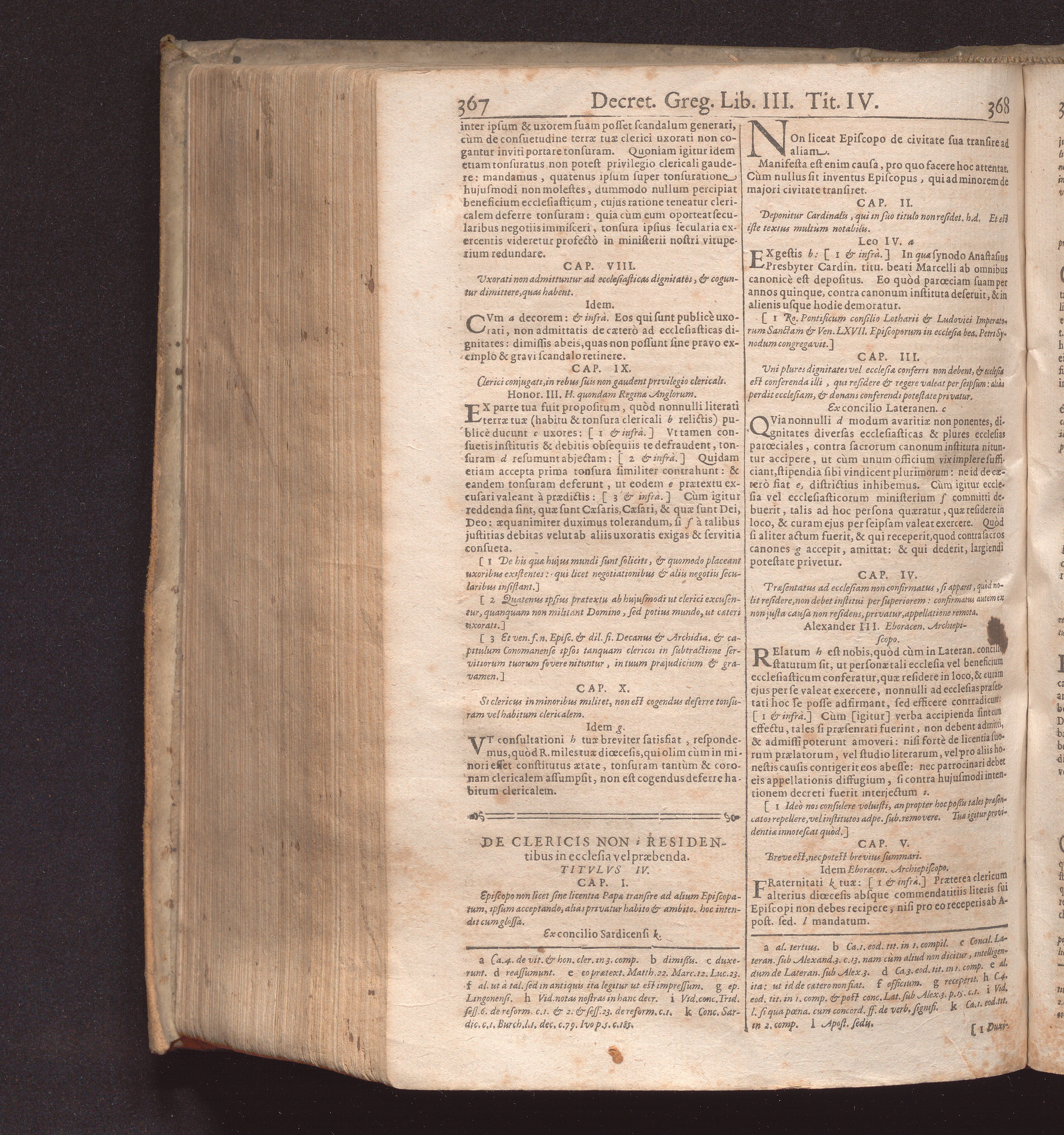 De Clericis Non Residentibus in ecclesia vel præbenda. Titvlvs IV.