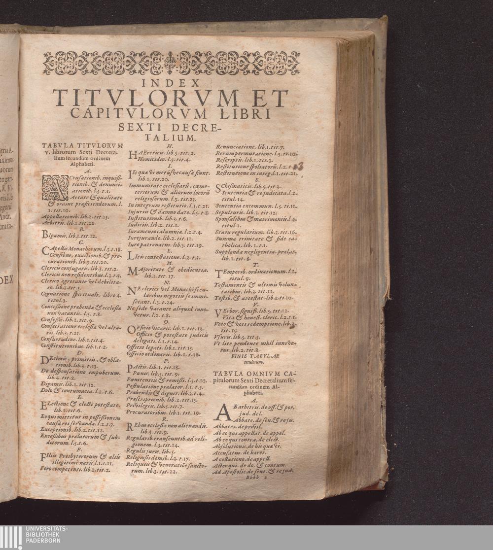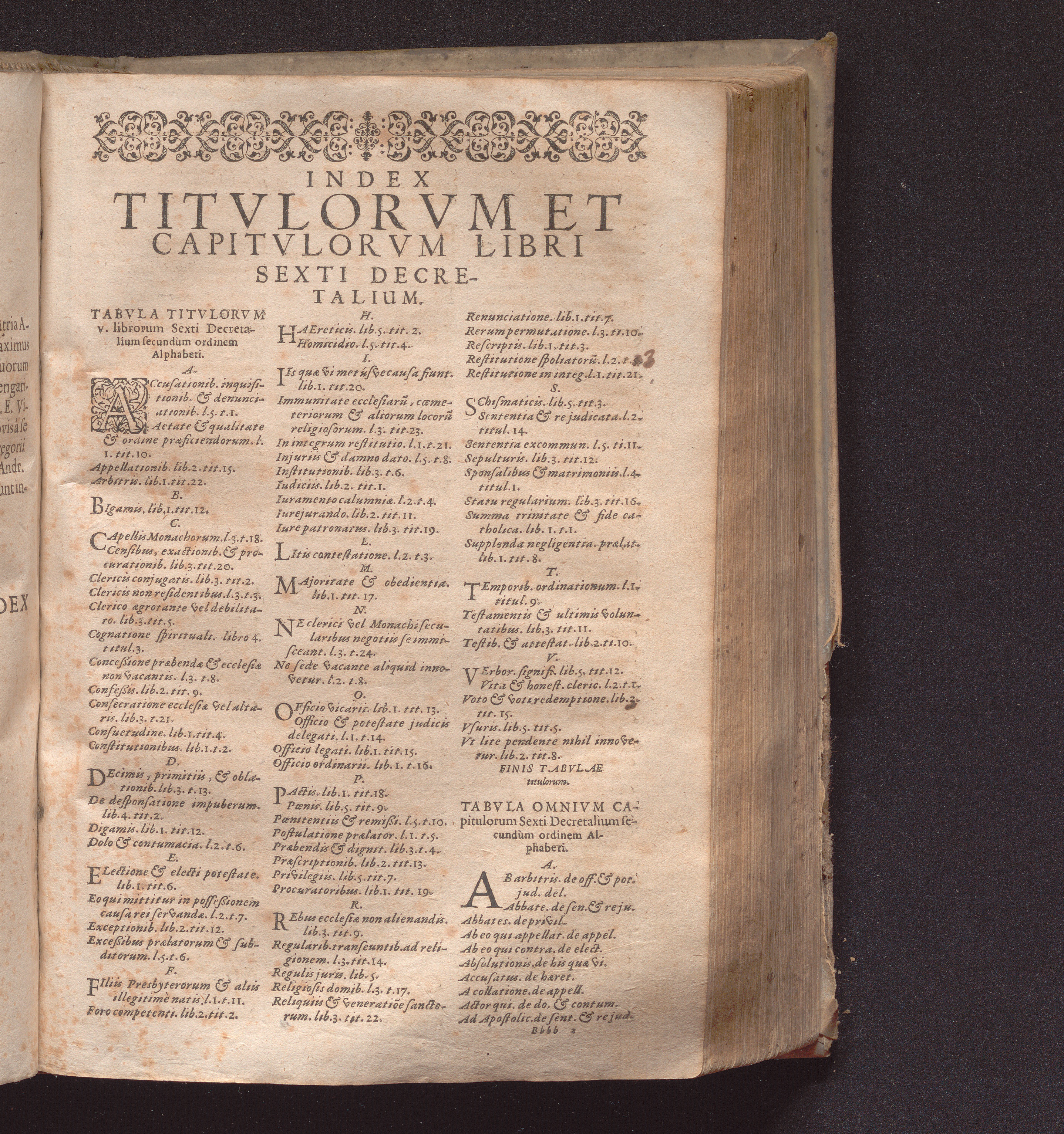 Index Titvlorvm Et Capitvlorvm Libri Sexti Decretalium.