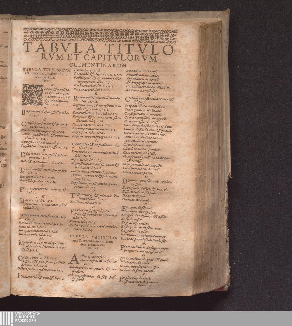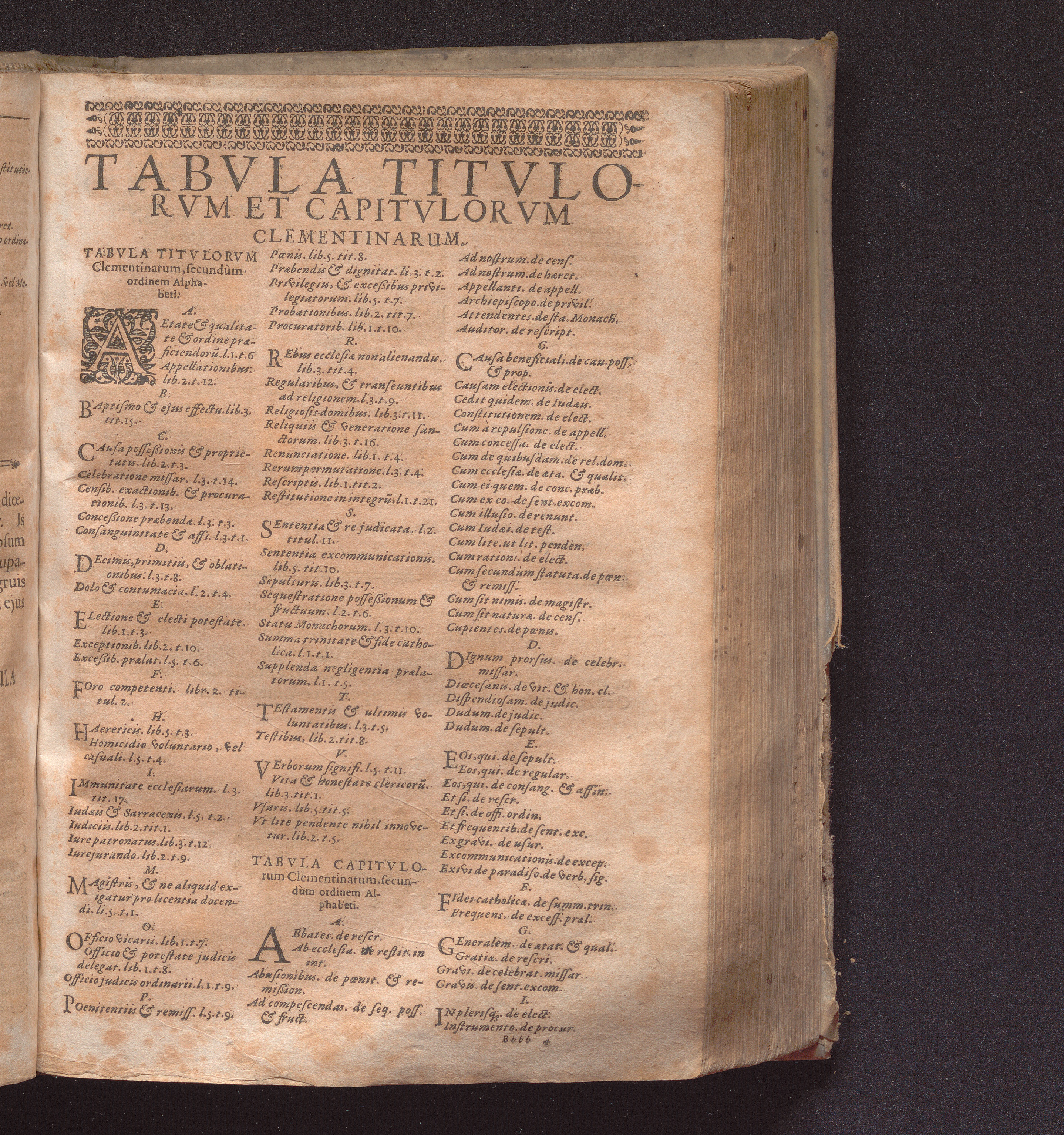 Tabvla Titvlorvm Et Capitvlorum Clementinarum.