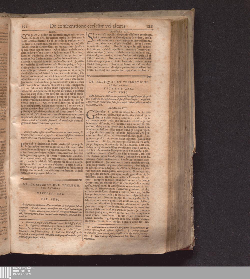 De Reliquiis Et Veneratione Sanctorum. Titvlvs XXII.