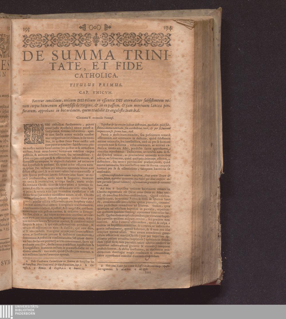De Summa Trinitate, Et Fide Catholica. Titulus Primus.