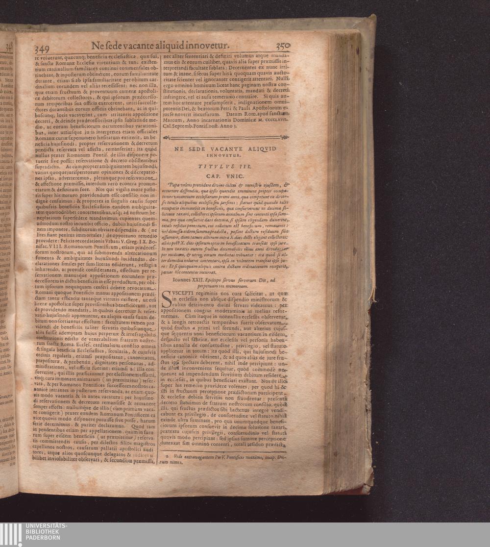 Ne Sede Vacante Aliqvid Innovetur. Titvlvs III.
