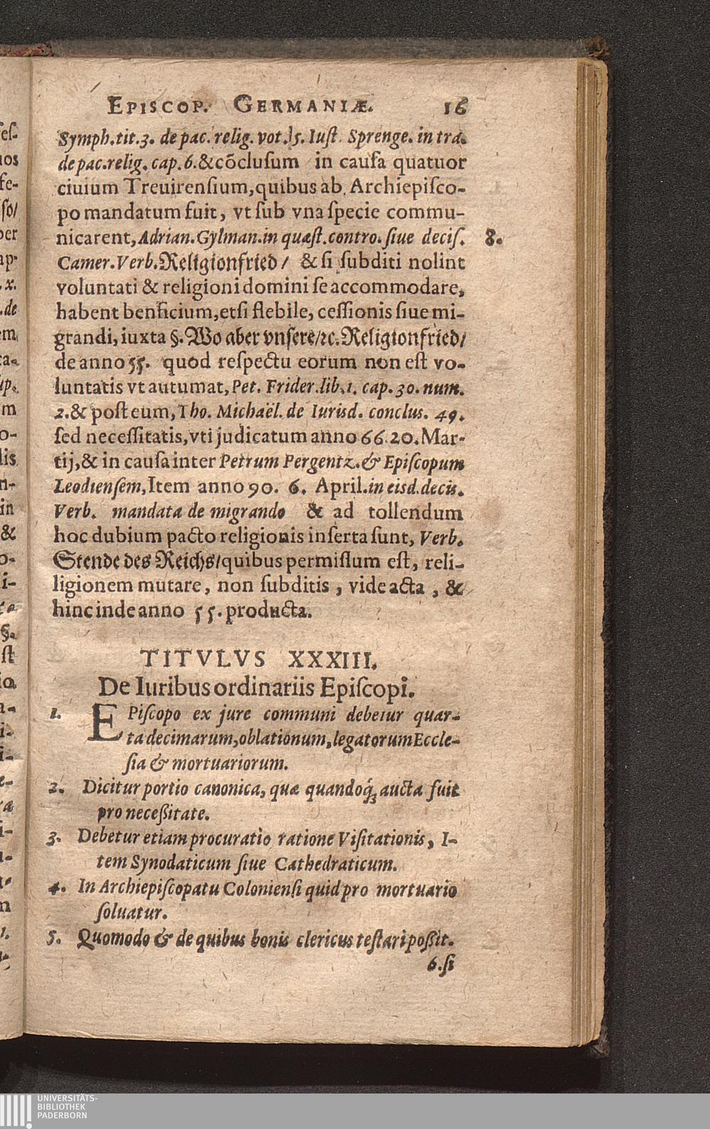 33. De Iuribus ordinariis Episcopi.