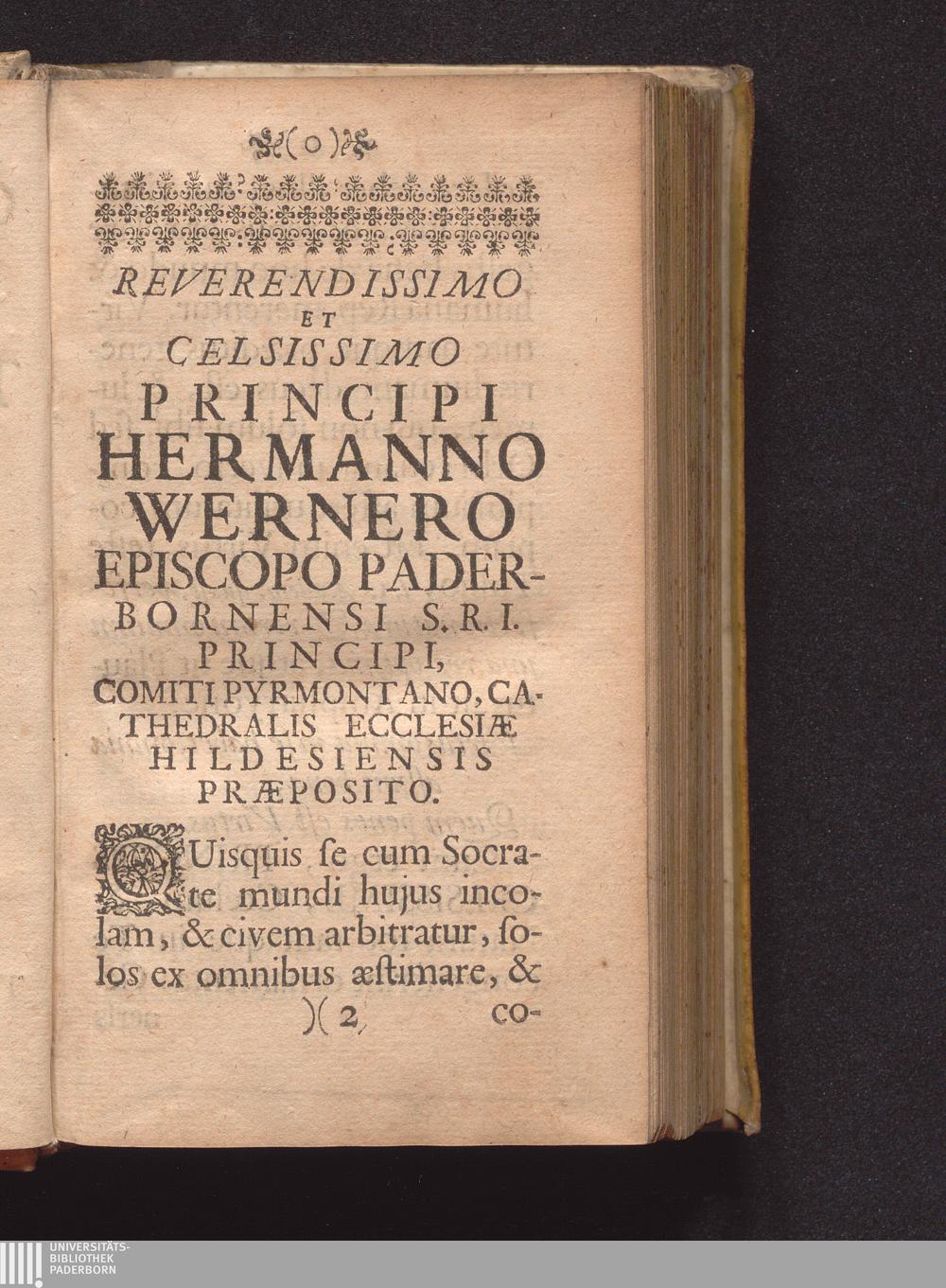 Reverendissimo Et Celsissimo Prinzipi Hermanno Wernero Episcopo Paderbornensi S.[...]