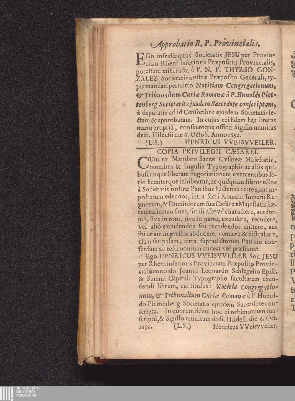 Notitia Congregationum Et Tribunalium Curiæ Romanæ / Auctore Hunoldo Plettenbergio Societatis Jesu
