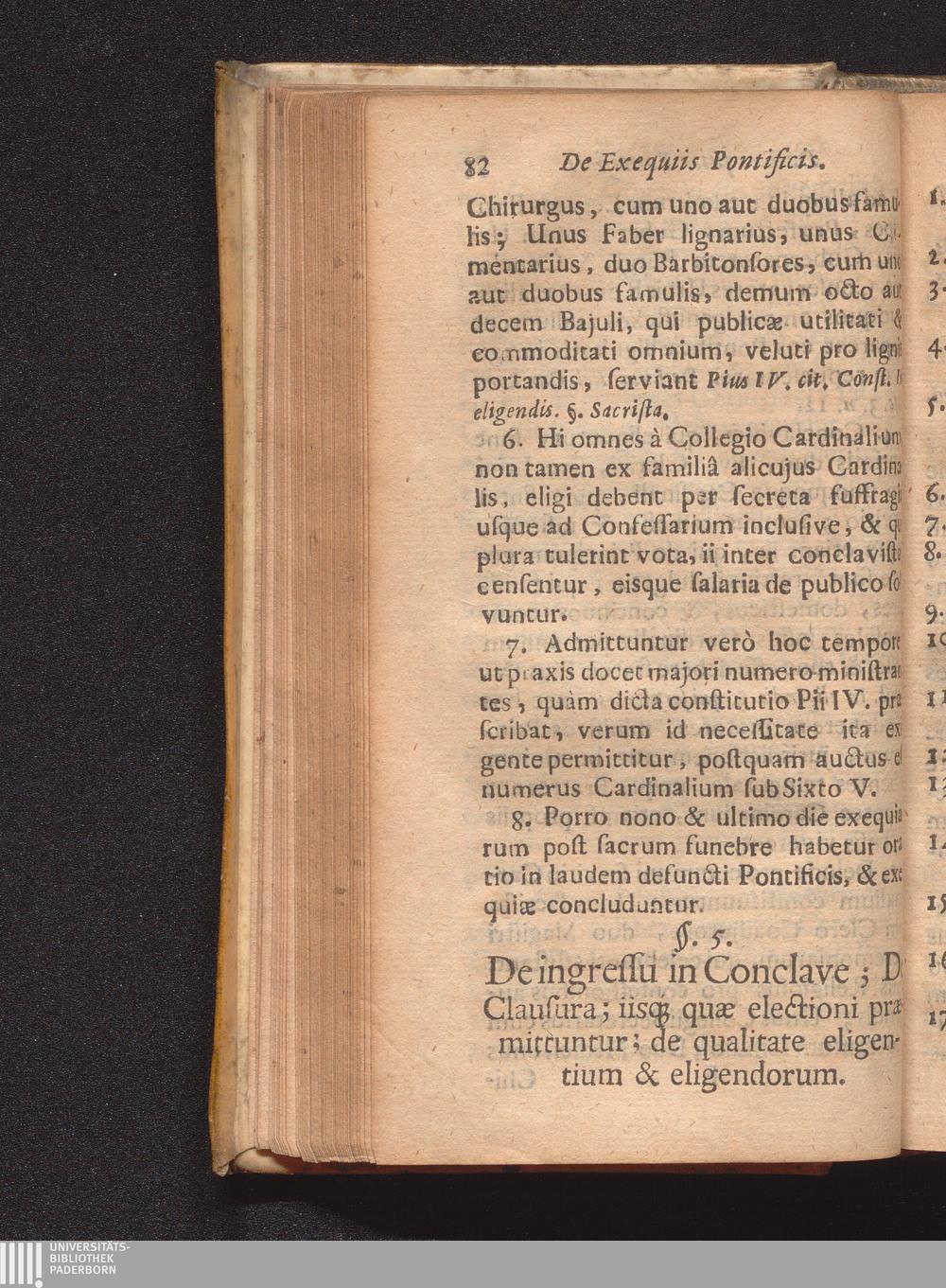 §. 5. De ingressu in Conclave; de clausura, iisque quæ electioni præmittuntur; De[...]
