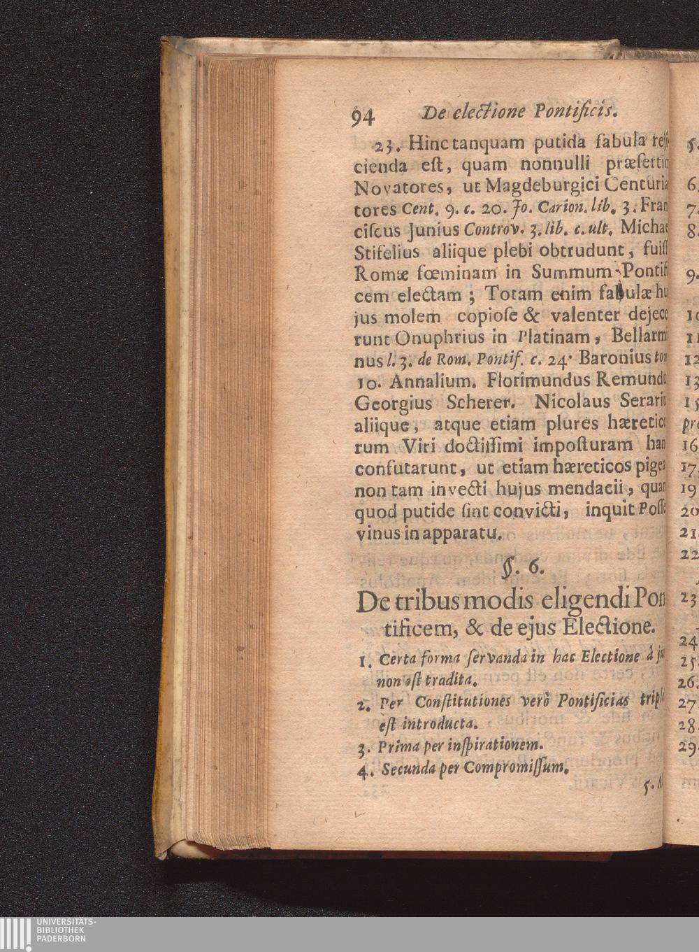 §. 6. De tribus modis eligendi Pontificem & de ejus electione.