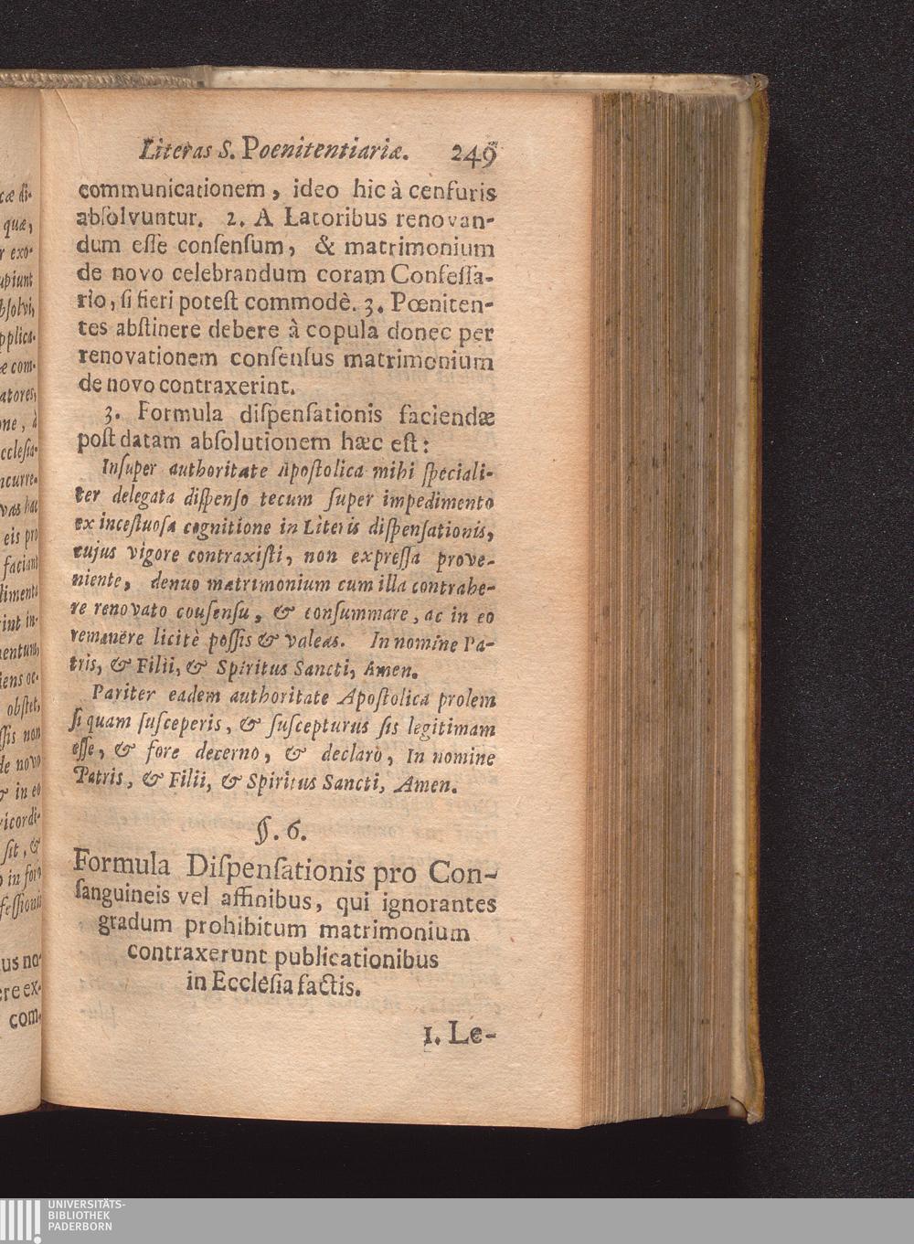 §. 6. Formula dispensationis pro Consanquineis vel affinibus, qui ignorantes gradum[...]