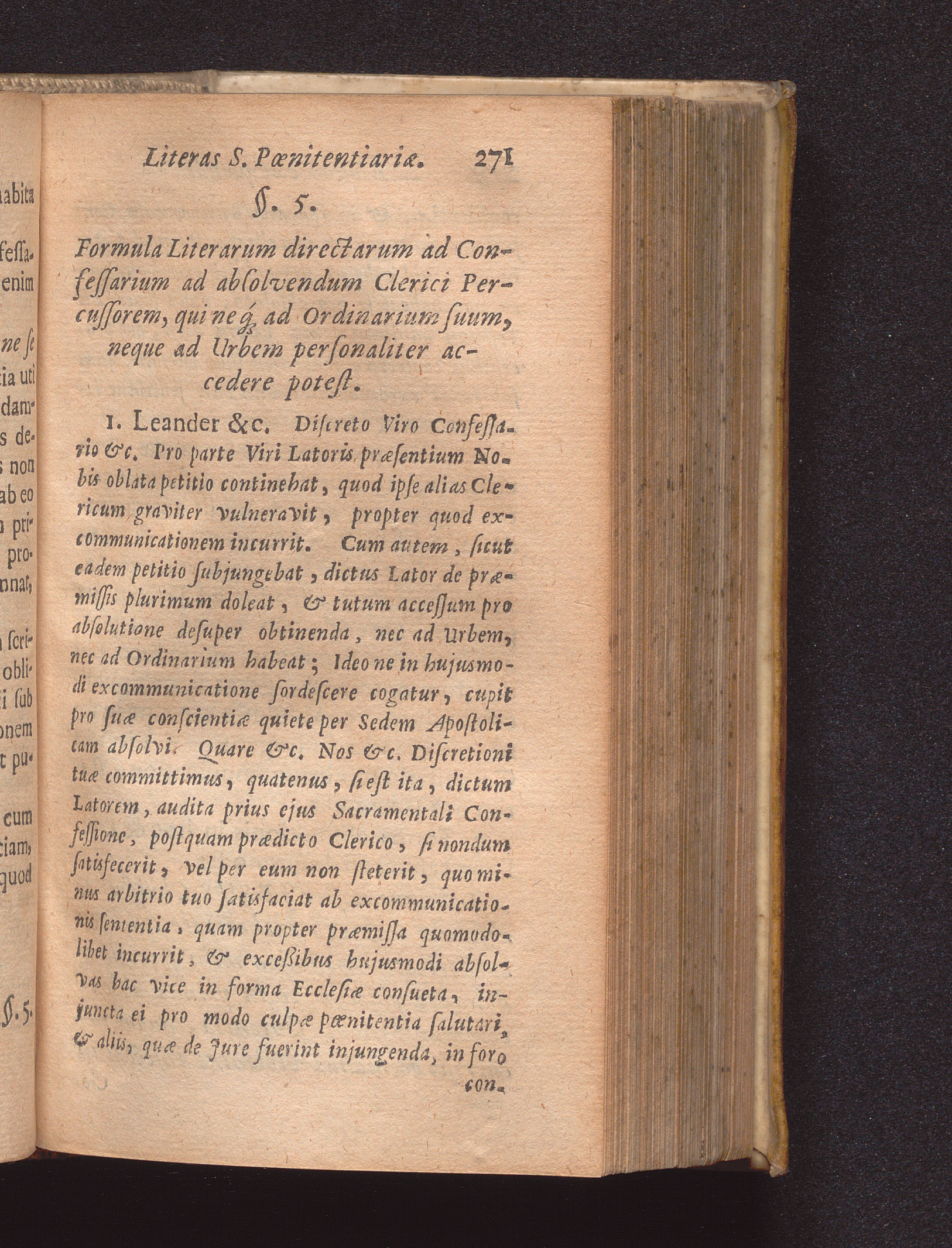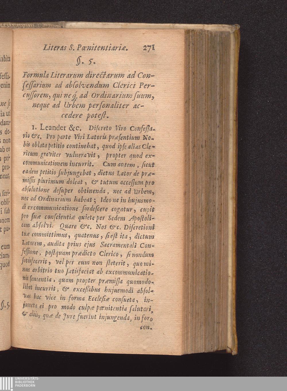 §. 5. Formula Literarum directarum ad Confessarium ad absolvendum Clereci persus[...]