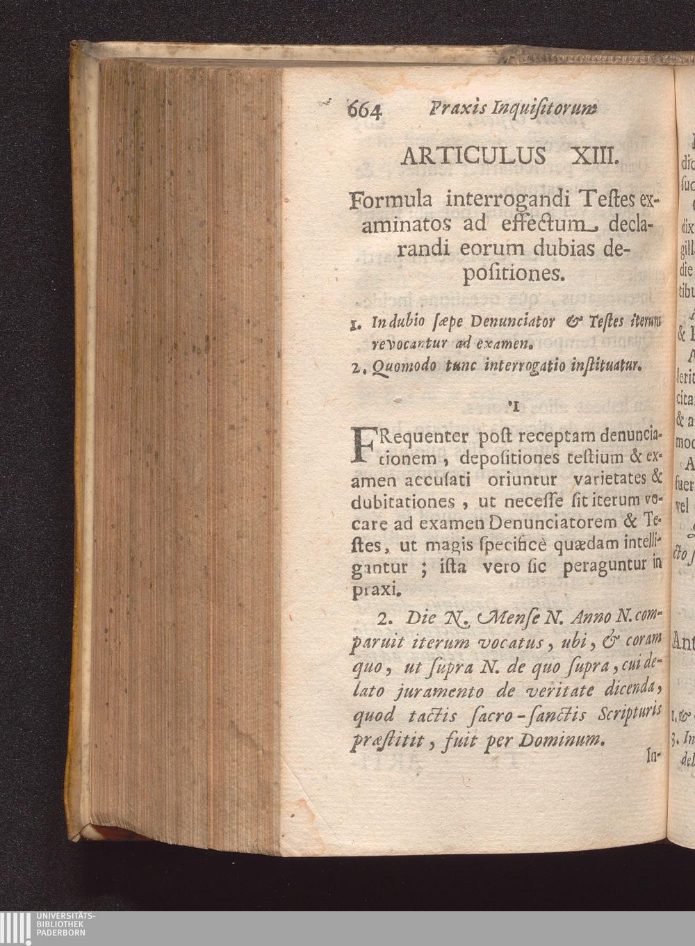 Art. 13. Formula interrogandi Testes examinatos ad effectum declarandi eorum dubias[...]