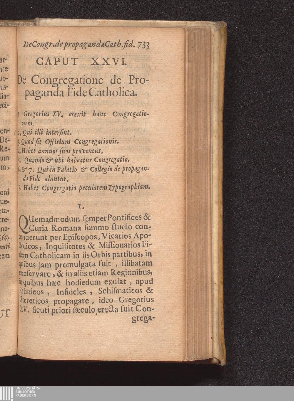 Cap. XXVI. De Congregatione de propaganda side Catholica.
