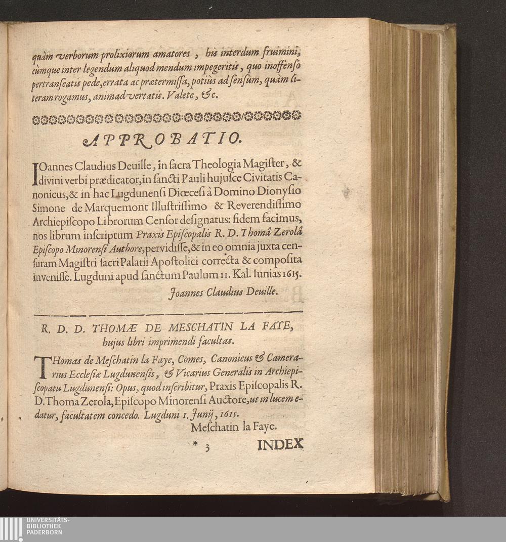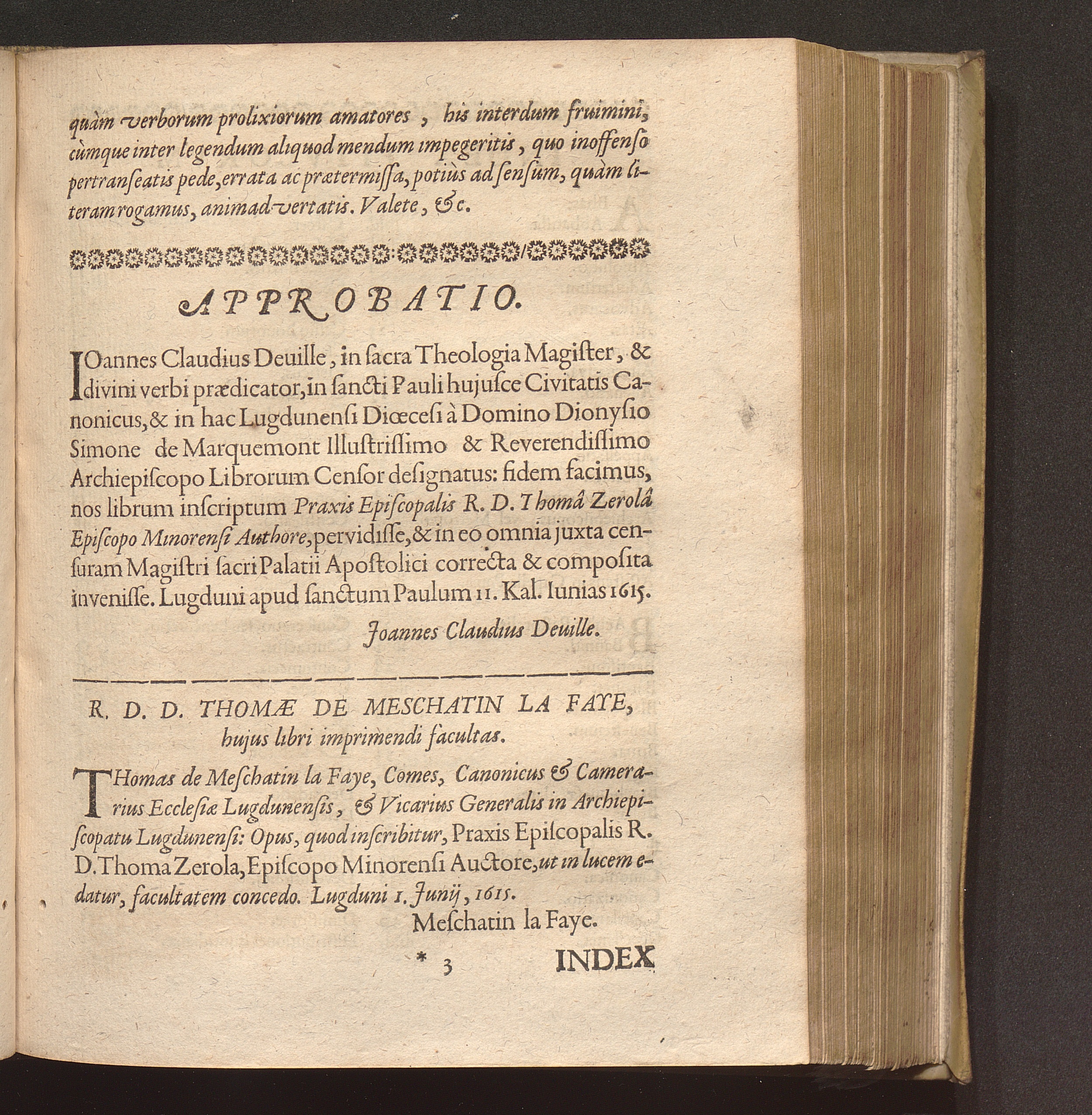 R. D. D. Thomae De Meschatin La laye, hujus libri imprimendi facultas.