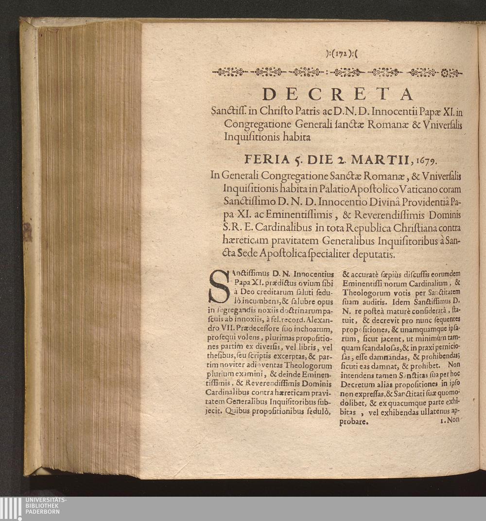 Decreta Sanctiss. in Christo Patris ac D. N. D. Innocentii Papae XI. in Congregatione[...]