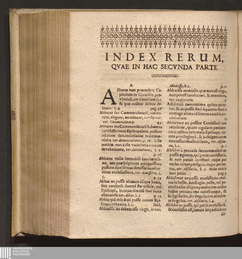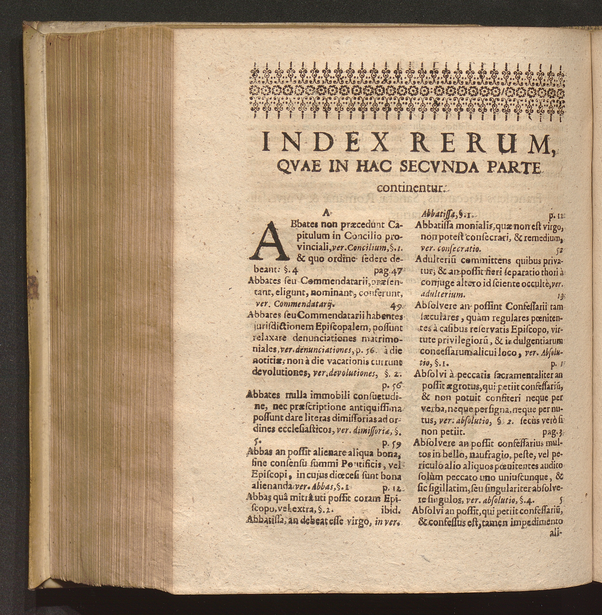 Index Rerum, Qvae In Hac Secvnda Parte continentur.