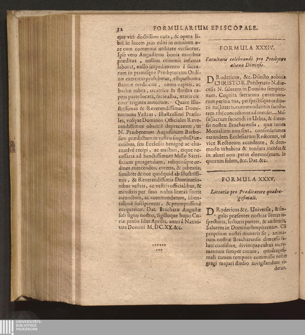Formularium Episcopale : In Quo Variae continentur formulae ad Episcopalem jurisdictionem ritè & rectè exercendam maximè utiles, & necessariae / Avctore Augustino Barbosa U. J. D. Lusitano Protonotario Apostolico, Addita mantissa Apostolîcarum Constitutionum & Decretorum ...