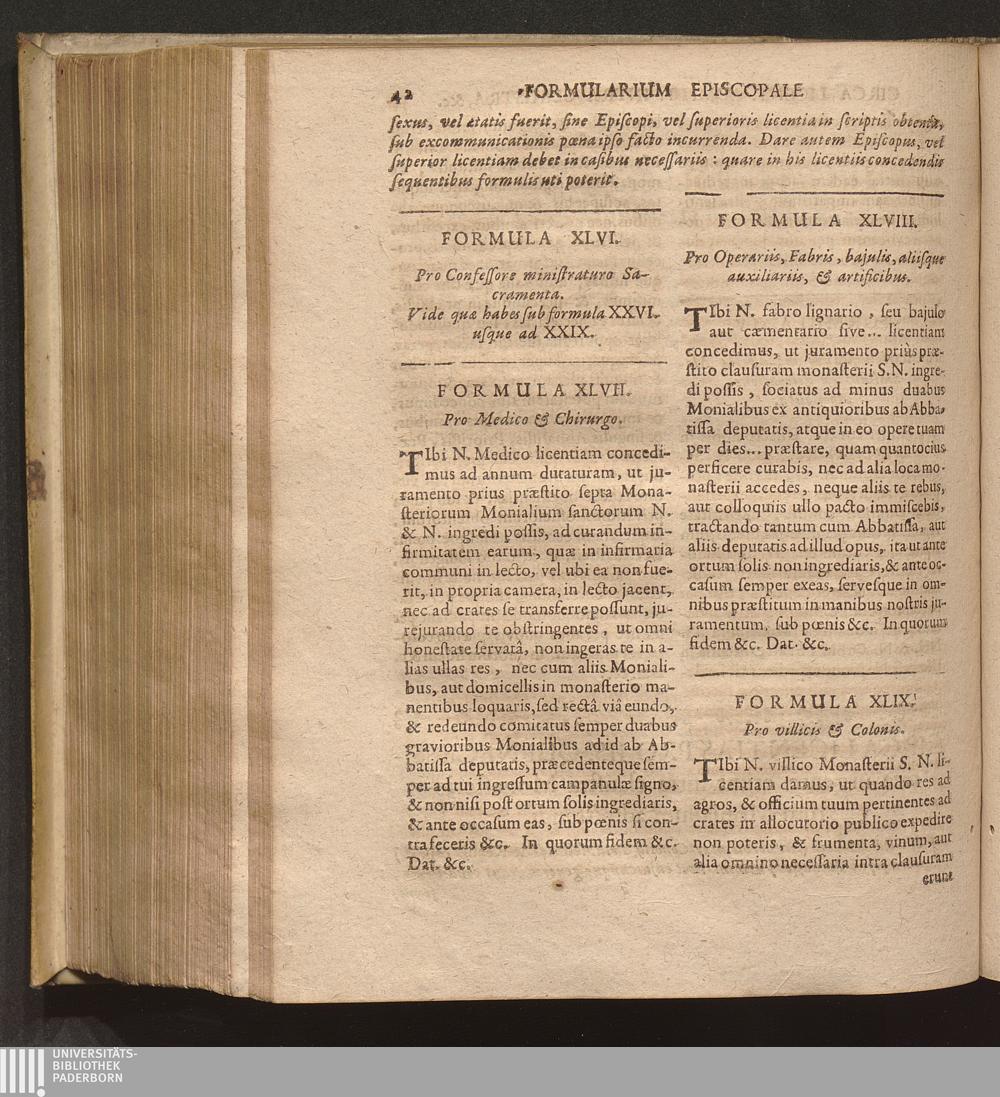 Formularium Episcopale : In Quo Variae continentur formulae ad Episcopalem jurisdictionem ritè & rectè exercendam maximè utiles, & necessariae / Avctore Augustino Barbosa U. J. D. Lusitano Protonotario Apostolico, Addita mantissa Apostolîcarum Constitutionum & Decretorum ...
