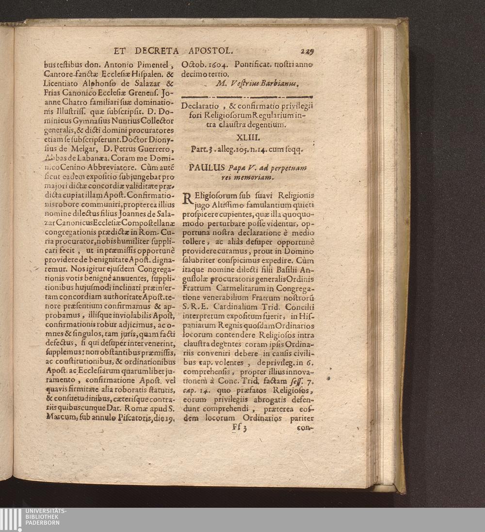 Formularium Episcopale : In Quo Variae continentur formulae ad Episcopalem jurisdictionem ritè & rectè exercendam maximè utiles, & necessariae / Avctore Augustino Barbosa U. J. D. Lusitano Protonotario Apostolico, Addita mantissa Apostolîcarum Constitutionum & Decretorum ...