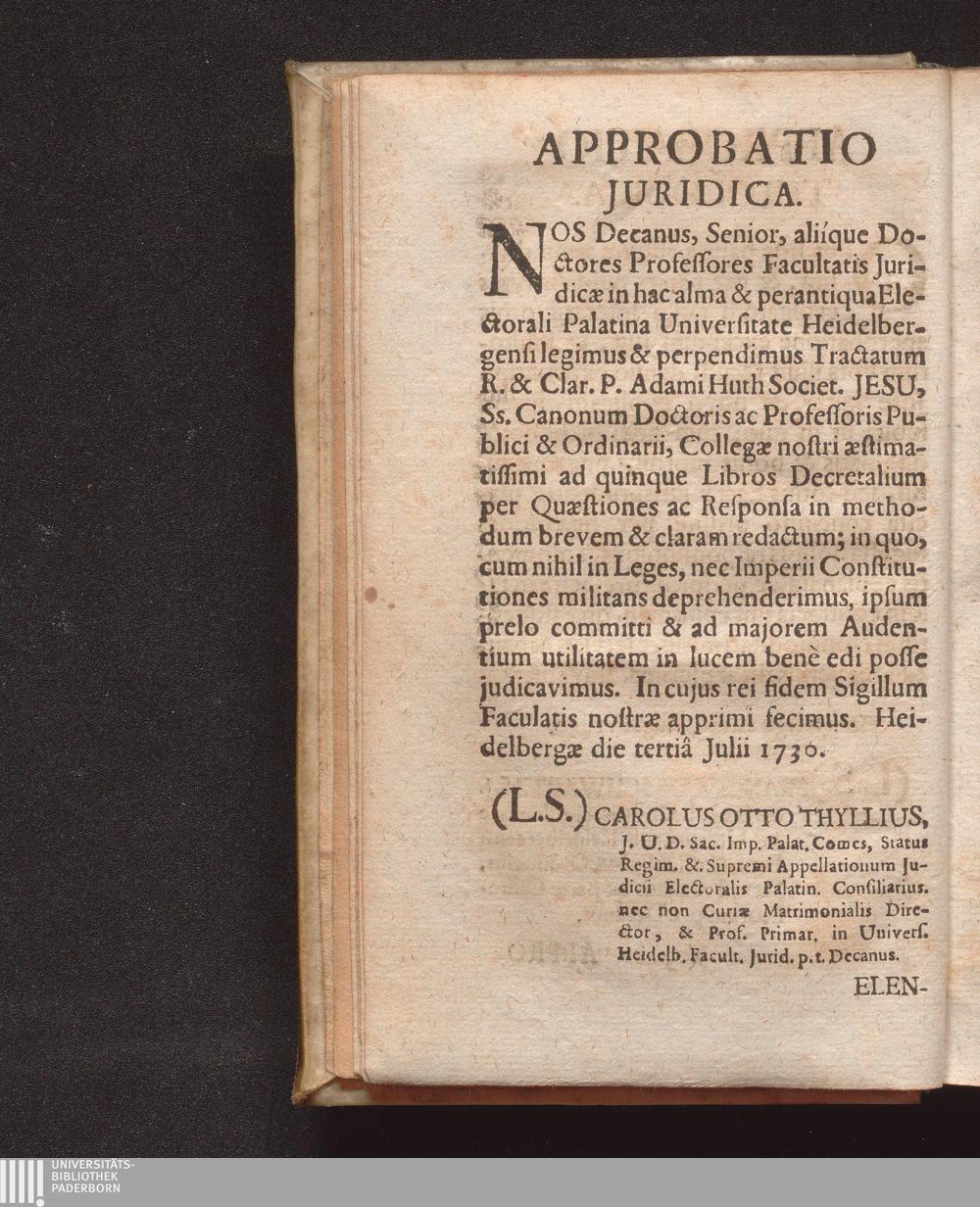 Jus Canonicum Ad Libros V. Decretalium Gregorii IX. / Explicatum Et Per Quaestiones Ac Responsa In Methodum Brevem Et Claram Redactum Authore R. P. Adamo Huth e Societate Jesu ...