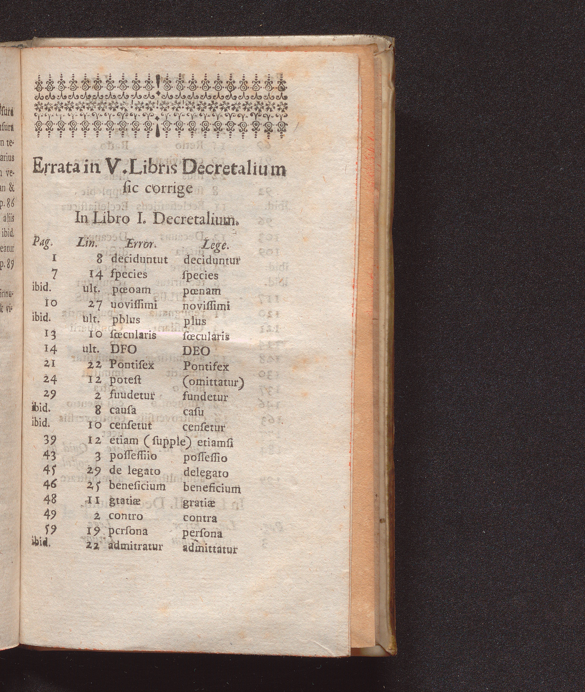 Errata in V. Libris Decretalium sic corrige
