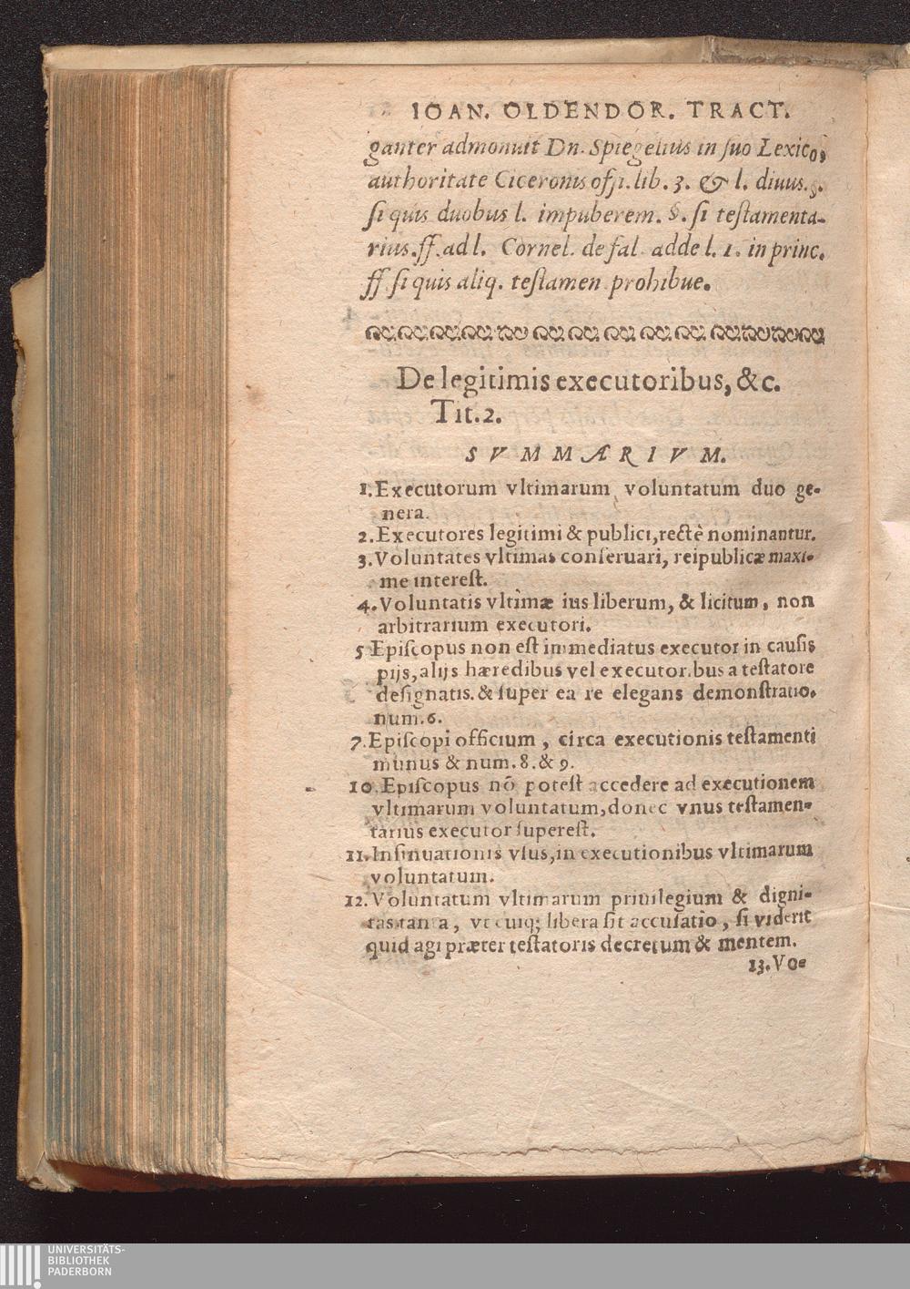 Tractatvs De Execvtoribvs Vltimarvm Volvntatum duorum celeberrimorum iurisconsultorum : Cùm Summarijs & indice methodico / Ioan. Iacobi à Canibus Patauini. Ioan. Oldendorpij