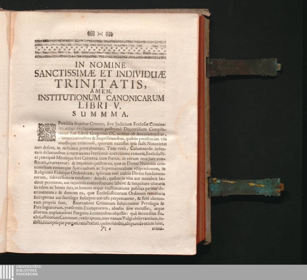 In Nomine Sanctissimæ Et Individuæ Trinitatis, Amen. Institutionum Canonicarum Libri[...]
