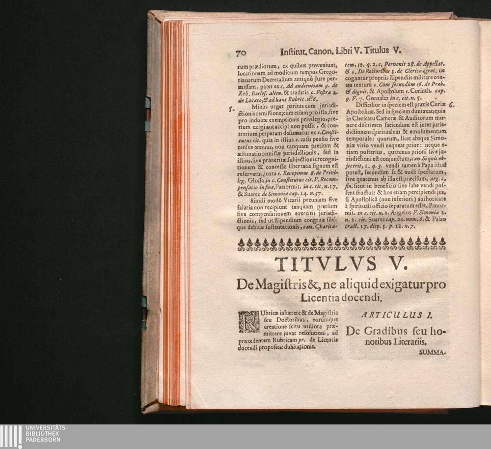 Titulus V. De Magistris &, ne aliquid exigatur pro Licentia docendi.