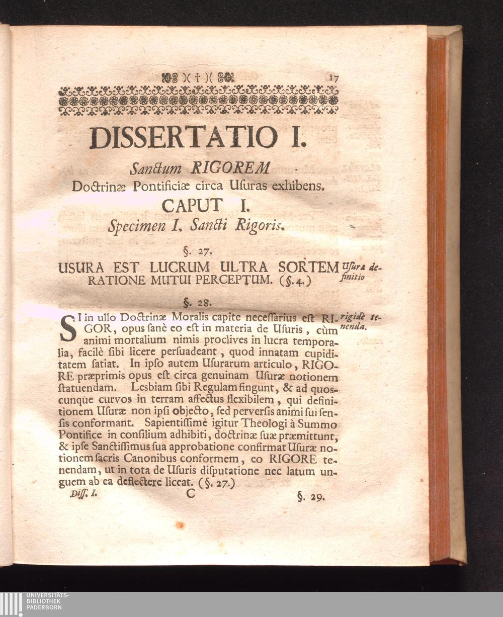 Dissertatio I. Inauguralis (1747) Sancti Rigoris Specimina Exhibens : Mense Decembri M DCC XLVII / Quam Cum Annexis Corollariis ... Præside P. Francisco Zech ... Post consueta Rigorosa Examina ... Publicæ Concertationi Subjecit Franciscus Josephus Barth ... Mense Decembri M DCC XLVII
