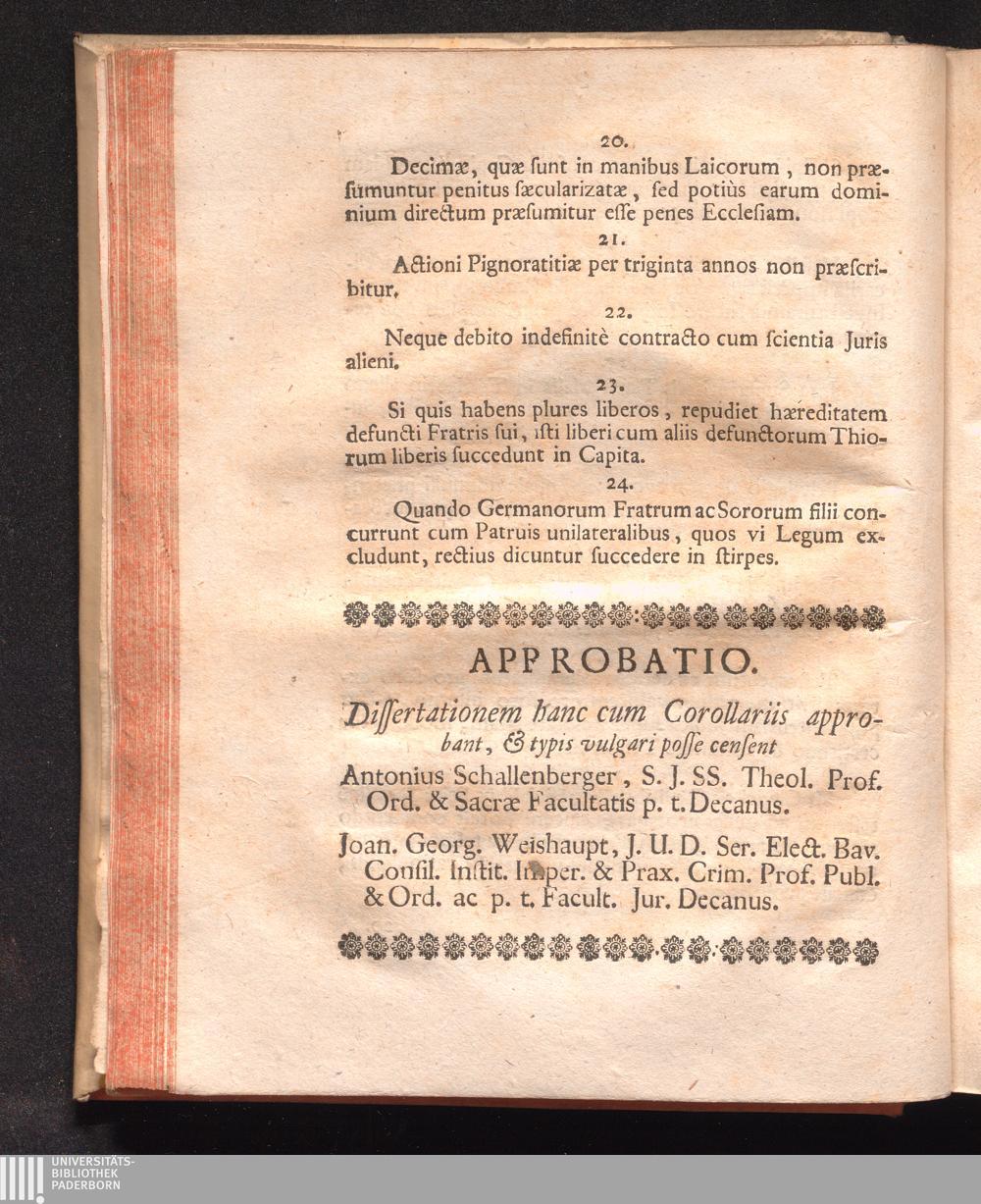 Dissertatio I. Inauguralis (1747) Sancti Rigoris Specimina Exhibens : Mense Decembri M DCC XLVII / Quam Cum Annexis Corollariis ... Præside P. Francisco Zech ... Post consueta Rigorosa Examina ... Publicæ Concertationi Subjecit Franciscus Josephus Barth ... Mense Decembri M DCC XLVII
